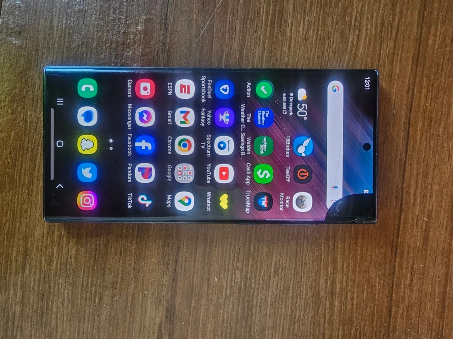 This is a Samsung Galaxy S22 Ultra smartphone. It features a large display and multiple camera lenses. It's a powerful device for everyday use.
