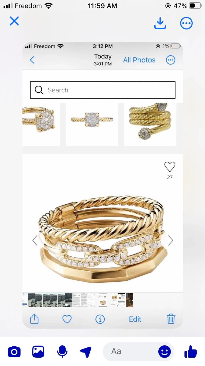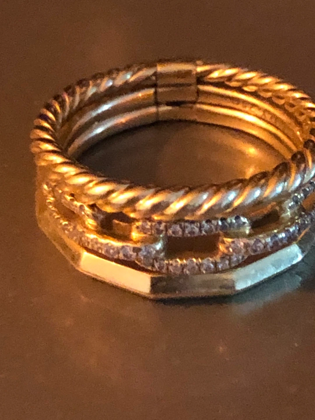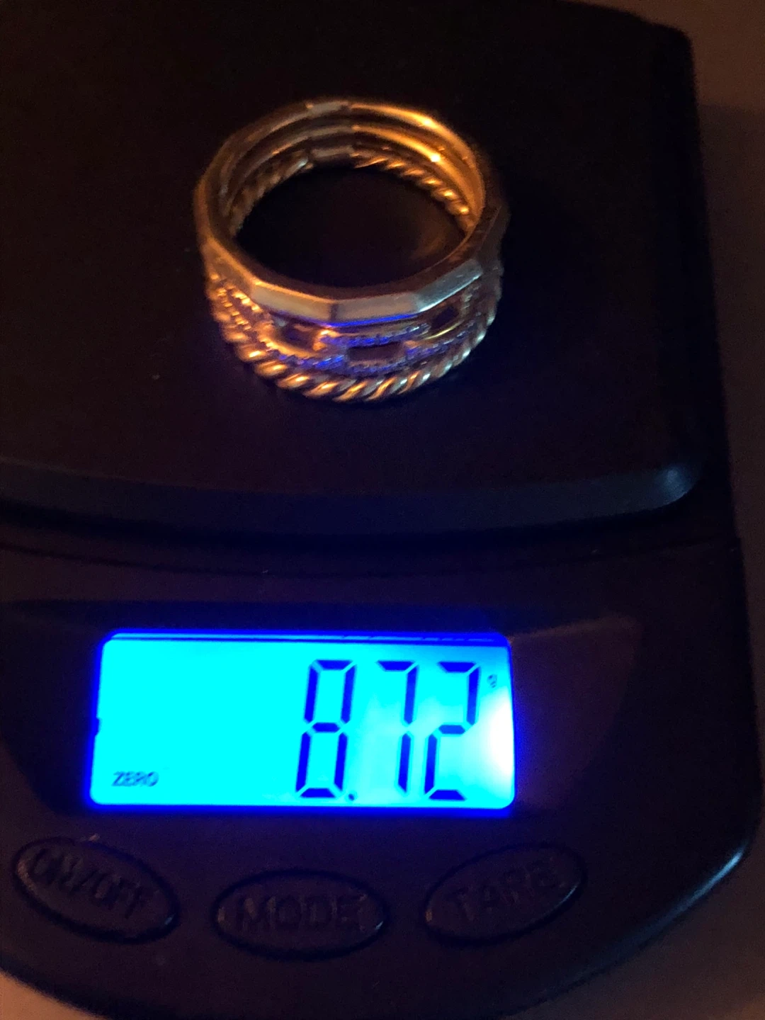 10Selling a David Yurman ring, it comes with the original box. It weighs 8.7 grams.. 18k solid gold & diamond chips. Retail was $4750.00 plus tax Gold value is $1200 @ $135 per gram 18K * cash price $1750.00* ** open to trades for a men’s 10k-14k solid gold chain** Can meet at jewelry/ gold shop for testing or a David Yurman retail store for authentication.