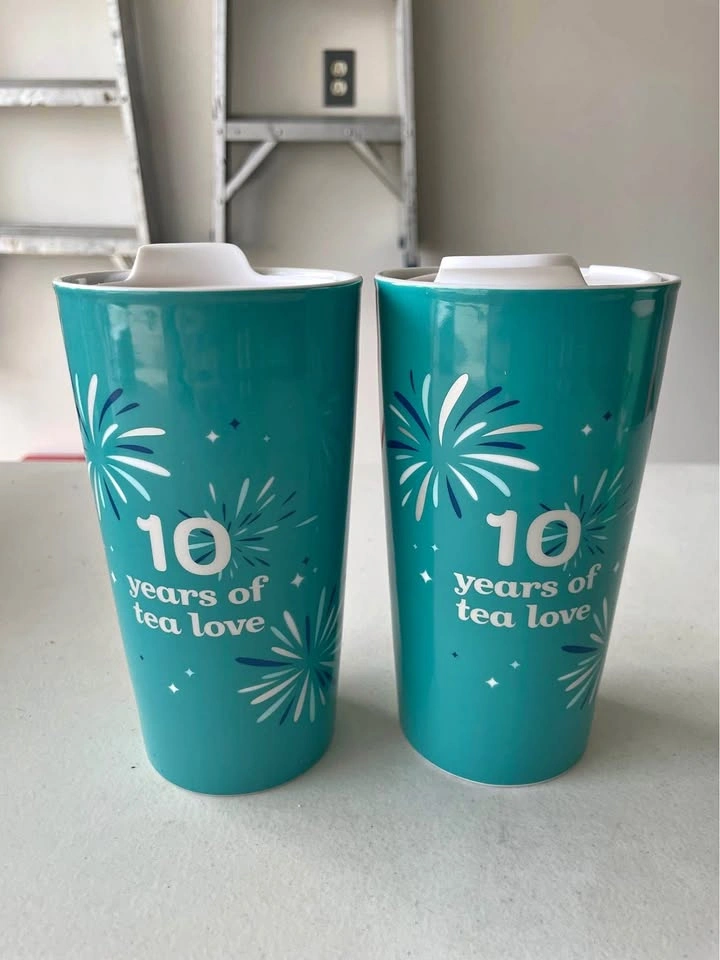 60David’s Tea 10 Years Of Tea Love With Lid Teal Ceramic Tea Mug Travel Tumbler. $20 each. Pickup NW Citadel or Ambelton. Cross posted.