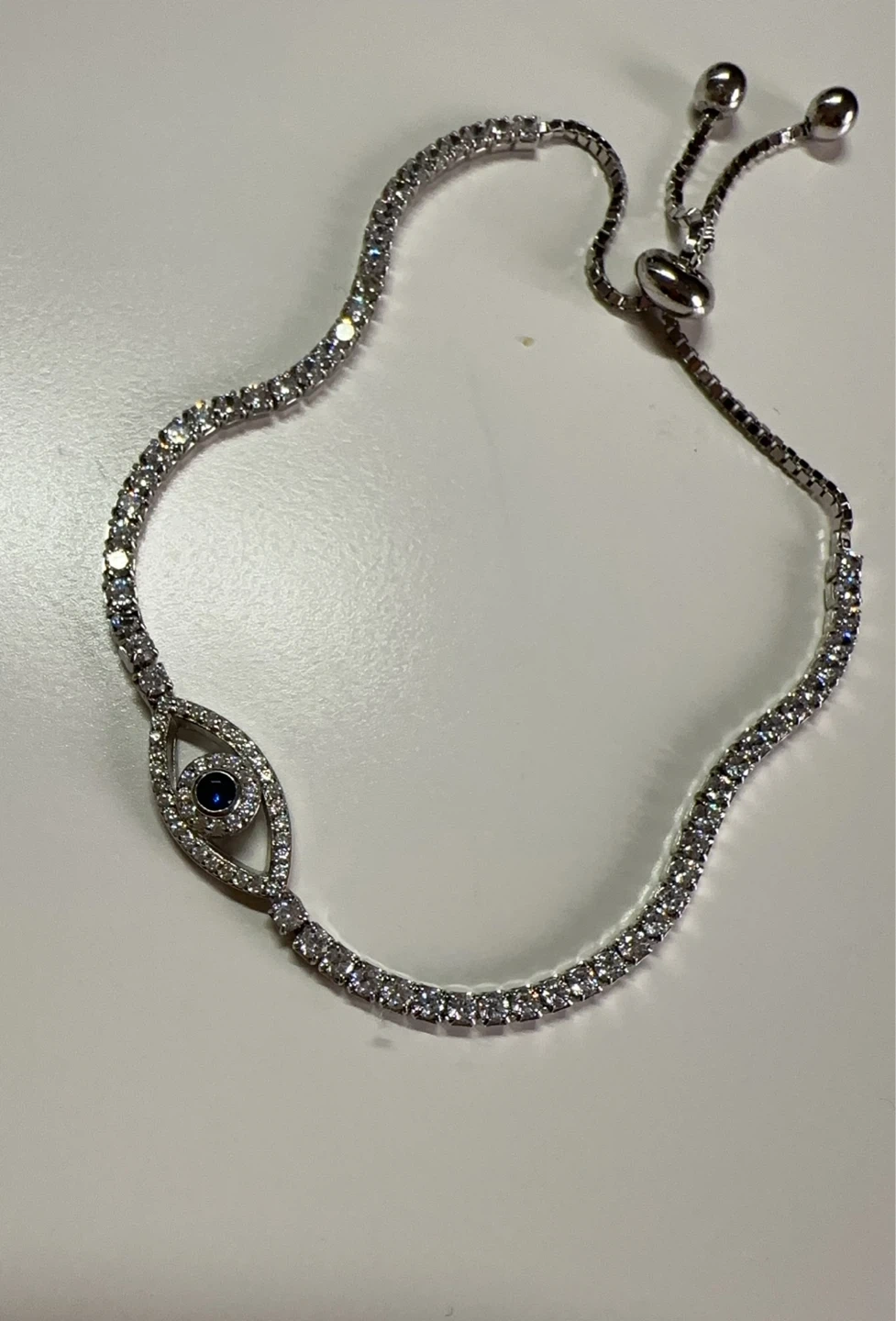 925 Silver Adjustable Evil Eye Tennis Bracelet with Blue