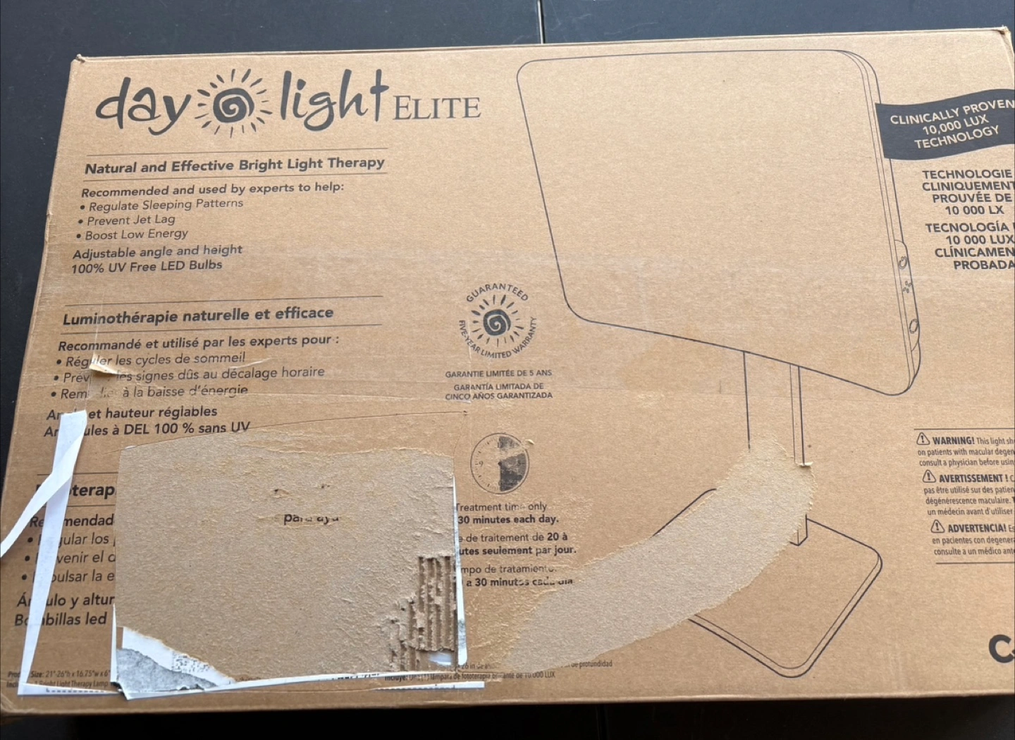 Description: Brand new, never used Day-Light Elite light therapy lamp. • Clinically proven 10,000 LUX brightness • Helps improve sleep patterns, boost energy, and prevent jet lag • Adjustable height and angle • 100% UV-free LED bulbs All parts included: lamp head, stand, base, screws, power cable, and manual. Price is final, no negotiations. Item is exactly as shown in the pictures