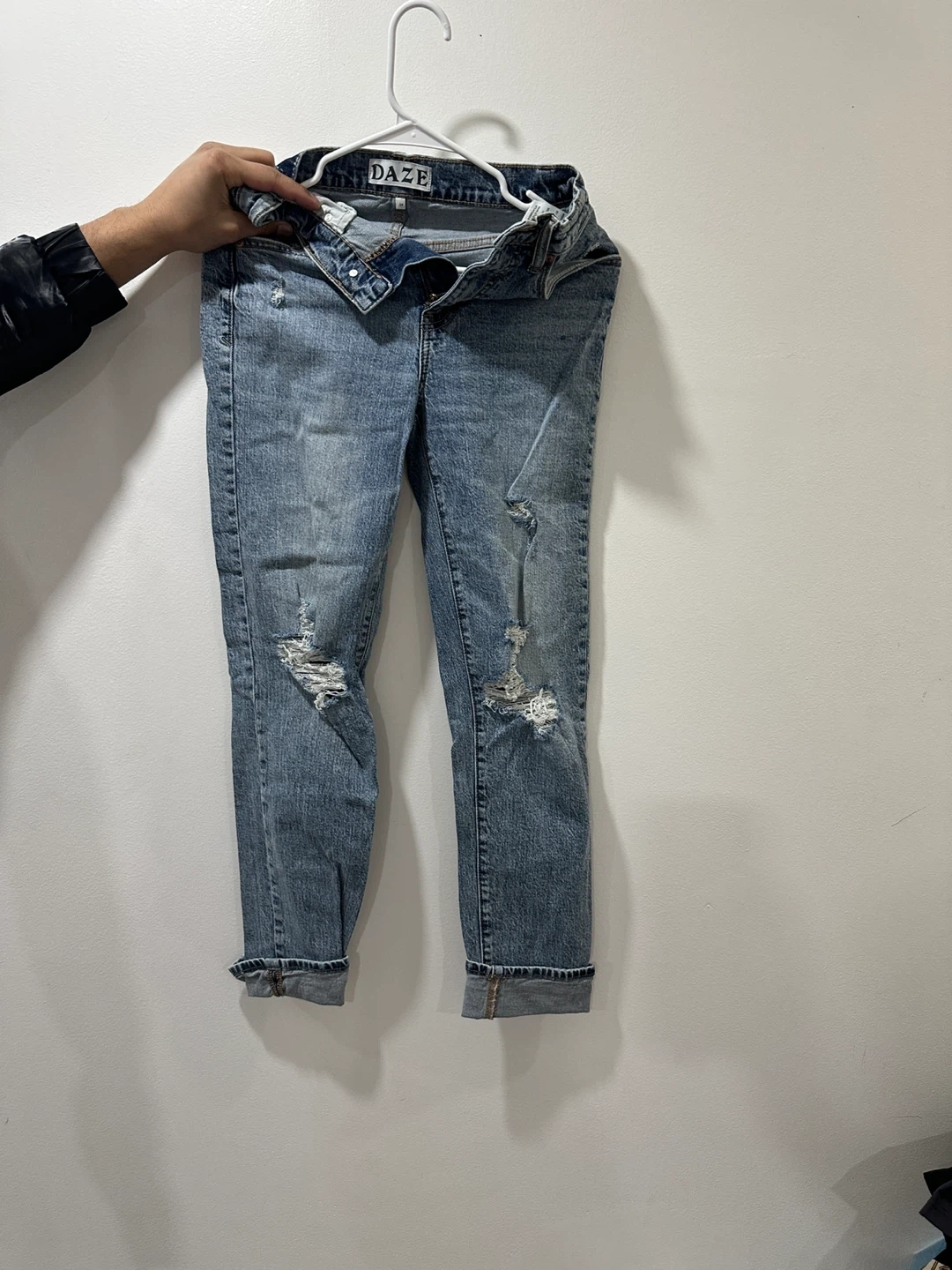 10Selling a pair of DAZE denim jeans. They're in good condition with a stylish, distressed look! Perfect for a casual outfit.