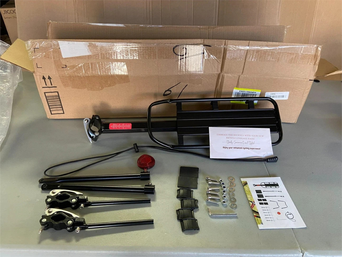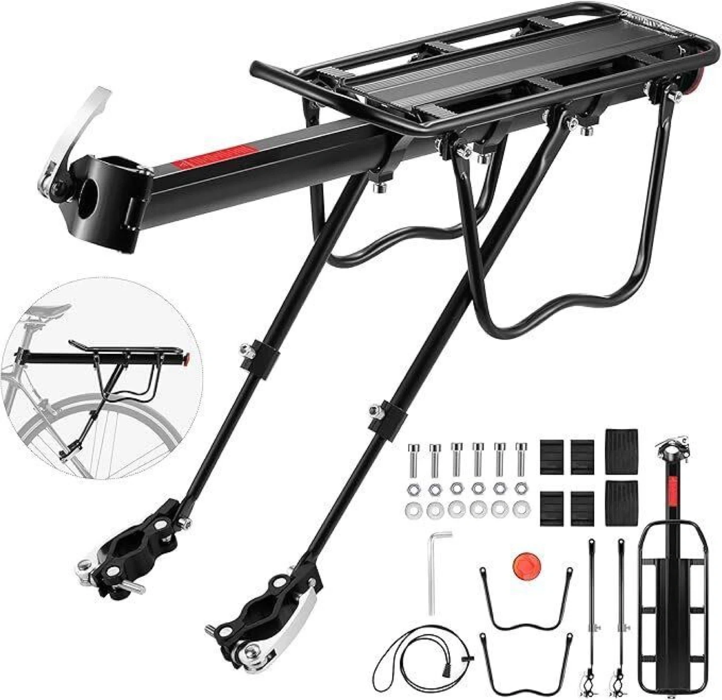 94DazSpirit Rear Bike Rack Brand new/ unassembled All pieces verified Cargo Rack, Adjustable MTB Rear Seat Luggage Rack, Load 60kg, Quick Release, Aluminum Alloy Material with Reflector for Cycling Camping Touring