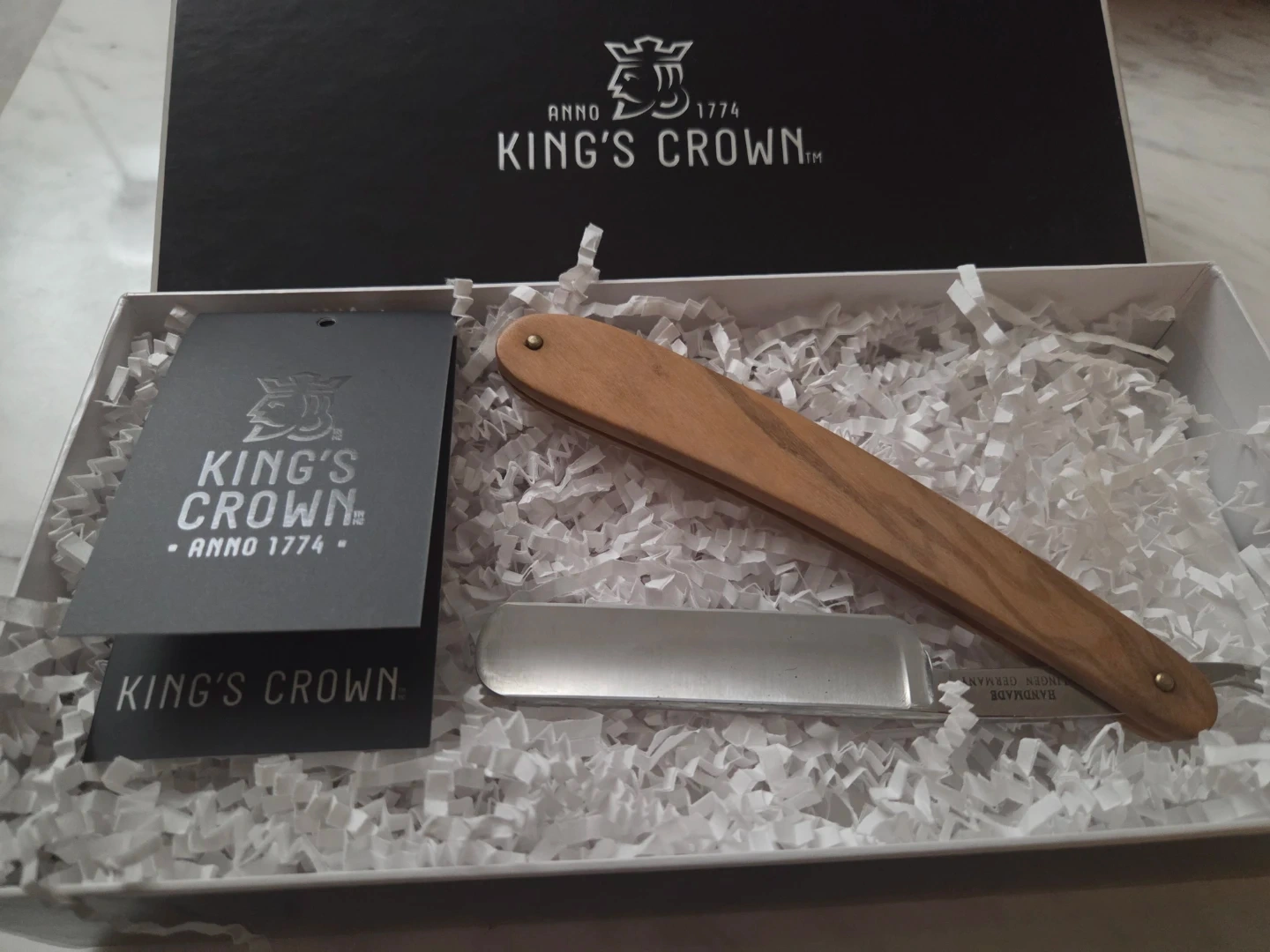 Selling a brand new King’s Crown straight razor set, complete with the original box. The razor features a stylish wooden handle and a sleek metal blade—perfect for traditional shaving enthusiasts or as a gift. Never used and in pristine condition.