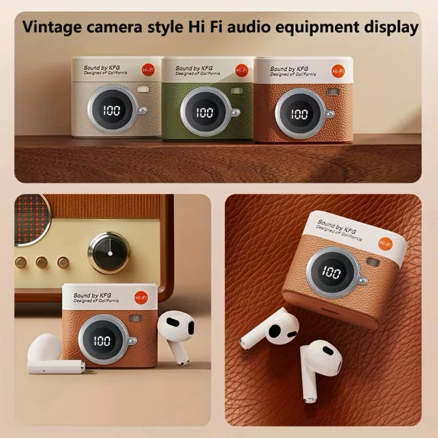 KFG True Wireless Earbuds - Brown Retro Camera Design