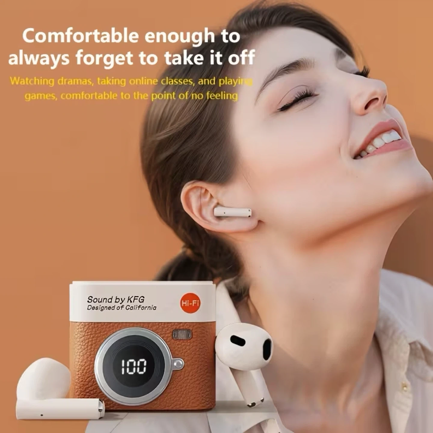 Sound by KFG true wireless earphones with a unique retro camera design. They feature surround sound and are comfortable to wear without outstanding sound performance and long battery life.