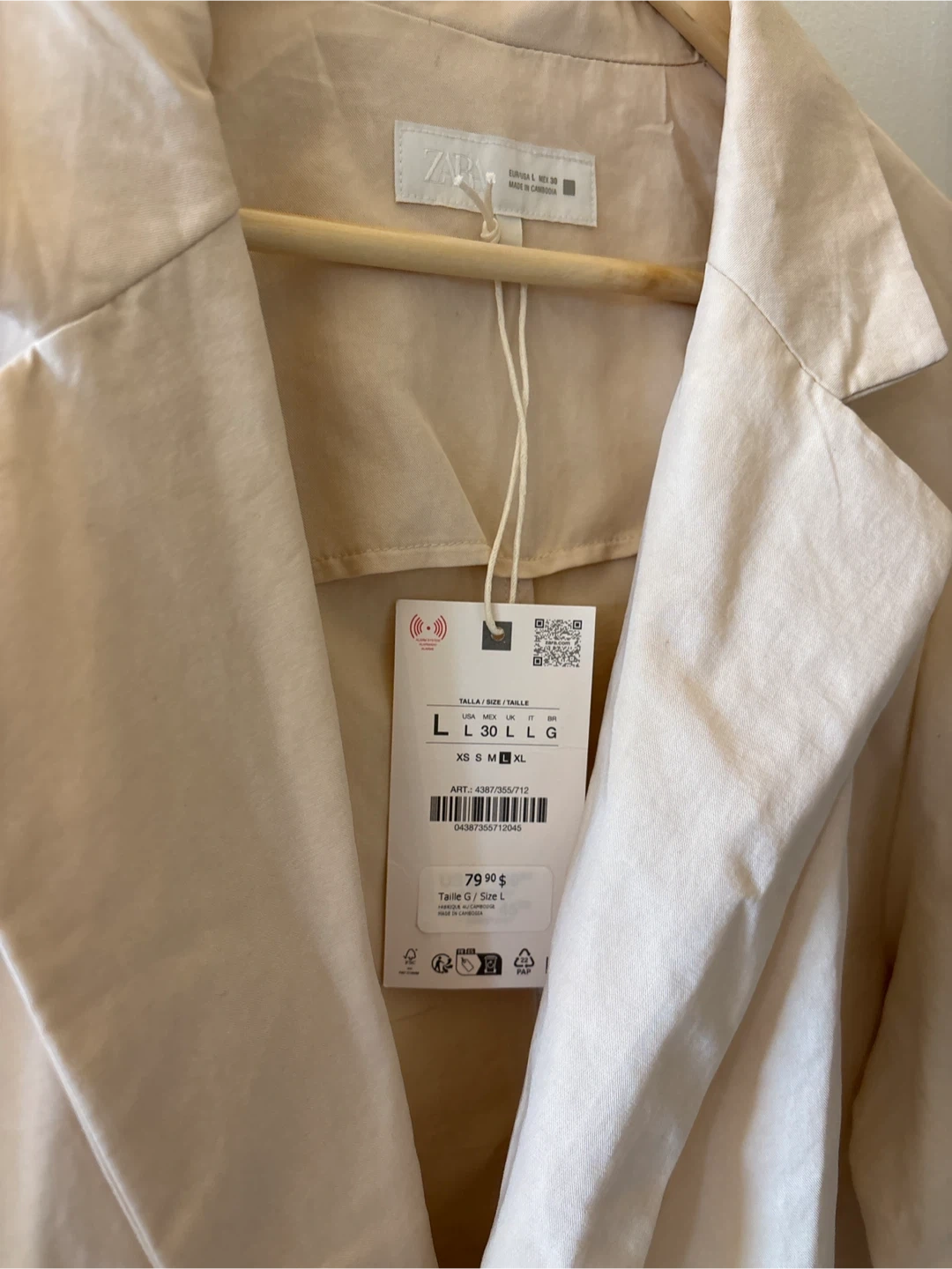 ZARA Beige Double-Breasted Blazer - Size L