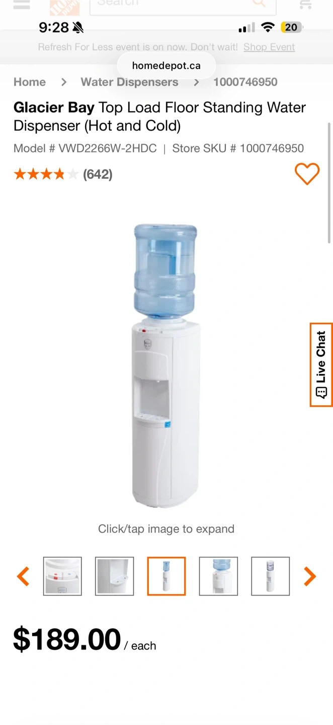 Glacier Bay Top Load Floor Standing Water Dispenser (Hot & Cold)