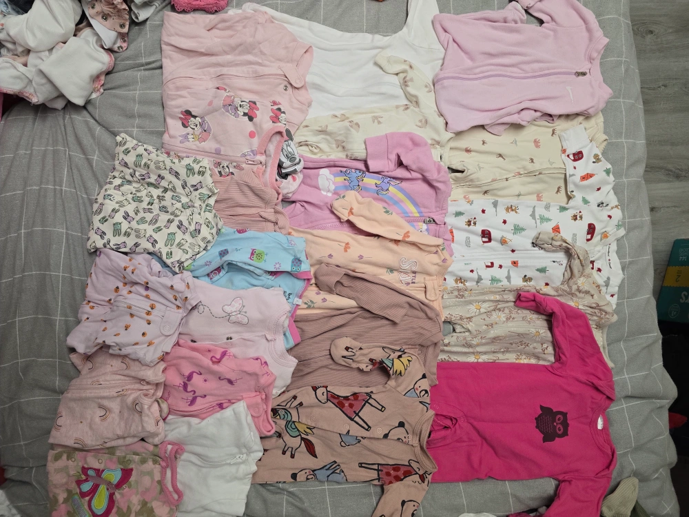 Selling a bundle of gently used baby clothes! There's a mix of onesies, pants, tops, and even a cozy sleep sack. All in good condition and ready for a new little one 0-3 mon ( newborn too)