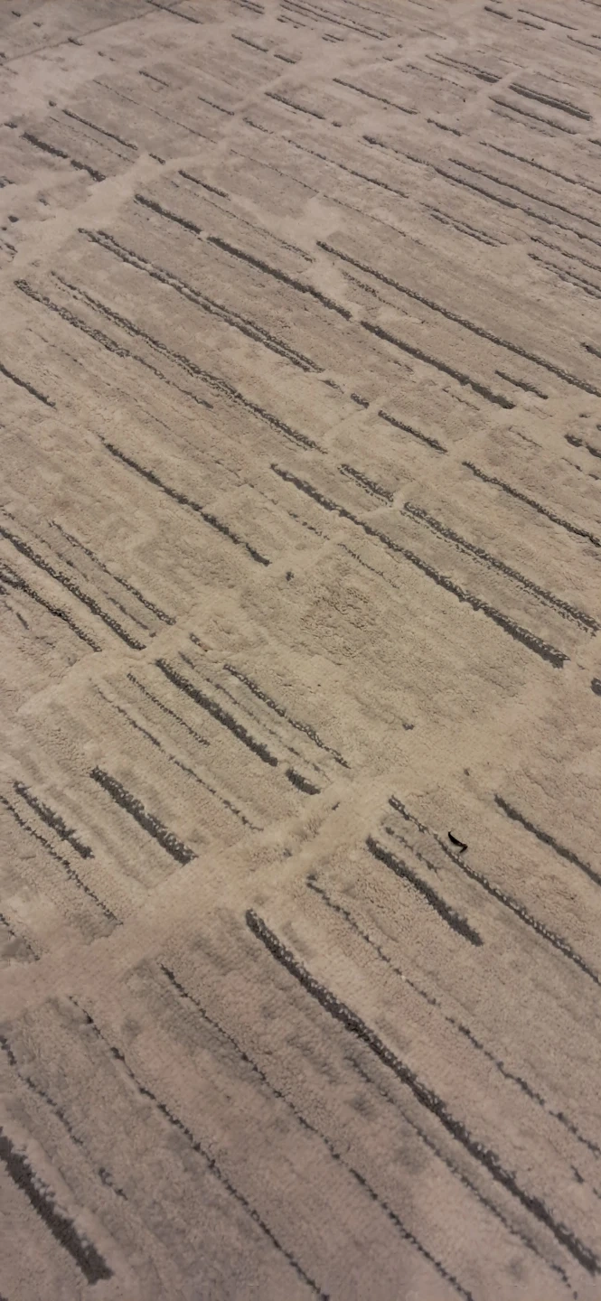 Cream and grey patterned area rug. Soft texture and a modern design. This rug would work well in a living room or bedroom. Moving Sale!!