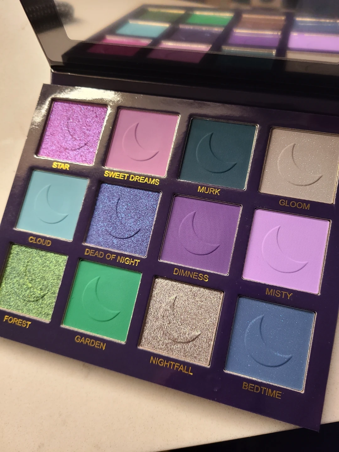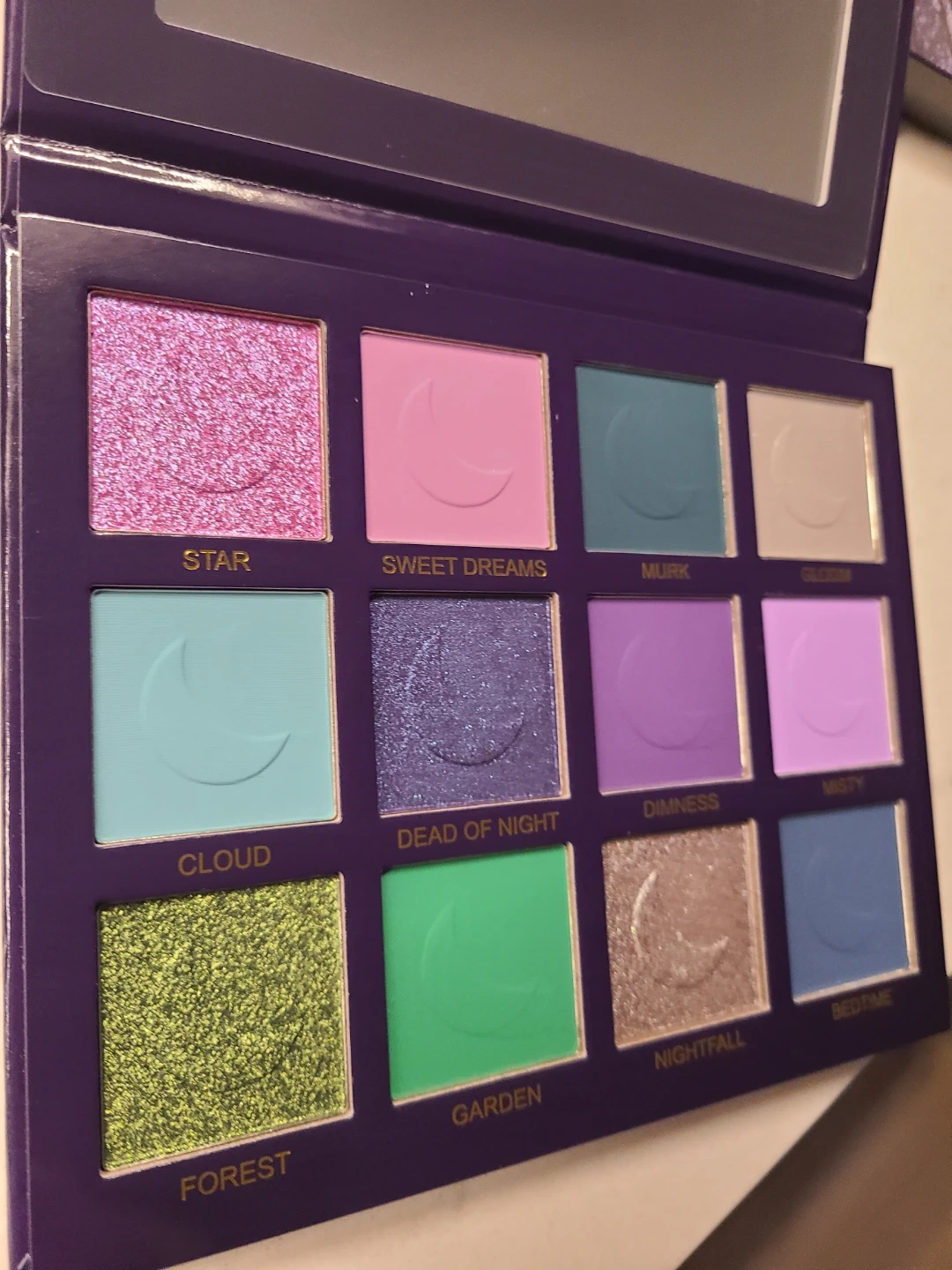 Unearthly Cosmetics DEAD OF NIGHT eyeshadow palette features 12 shades. It's designed for creating various looks with both matte and shimmer finishes.