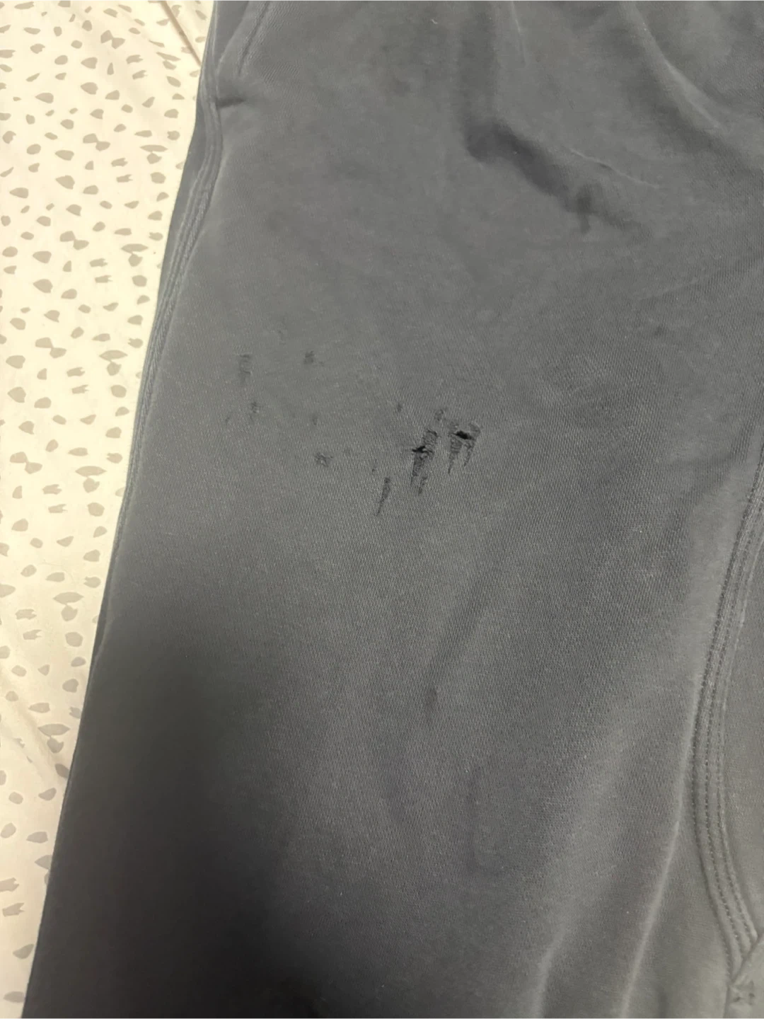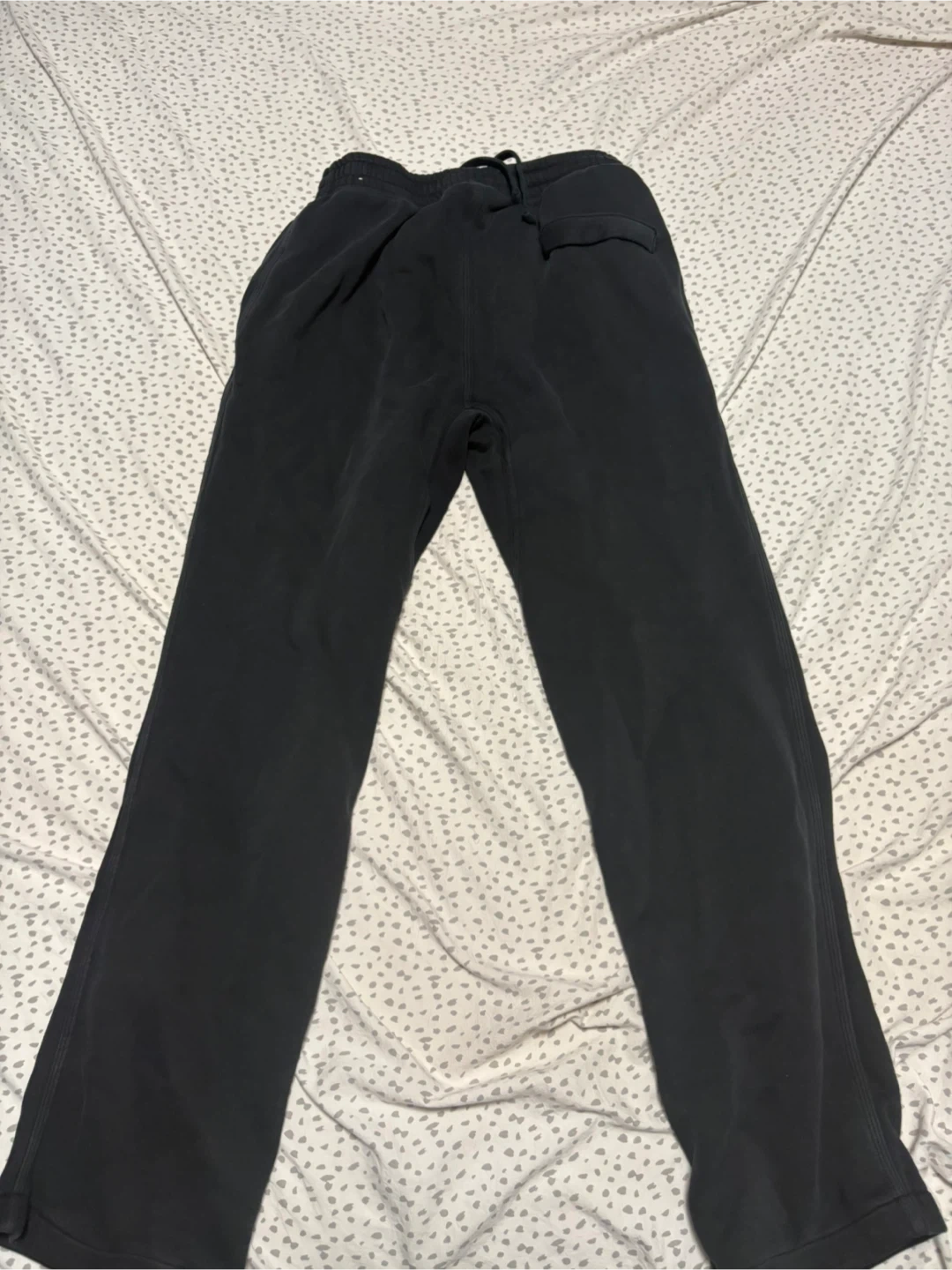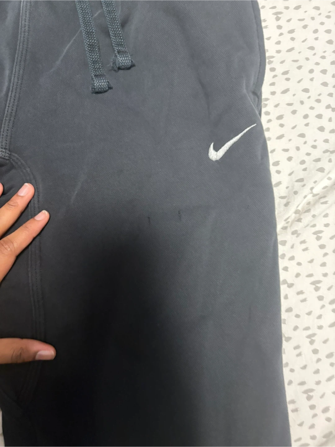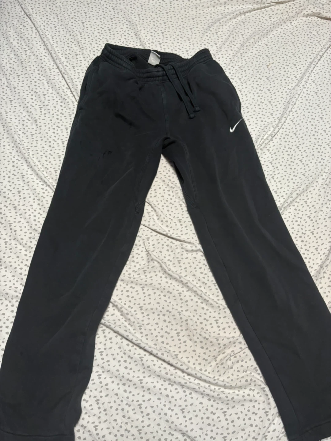 Grey Nike sweatpants with white swoosh logo. Made in Pakistan. Size Medium. These pants have a small tear on the right leg.