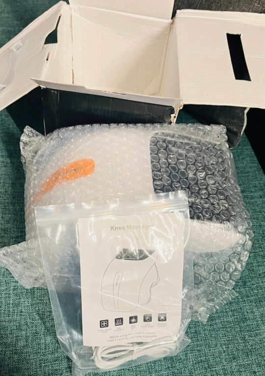 Get soothing relief with this brand new knee massager, designed to care for your knee joints with adjustable settings for vibration, infrared, and heating. While the box has been opened, rest assured that the device has never been used and is in pristine condition.