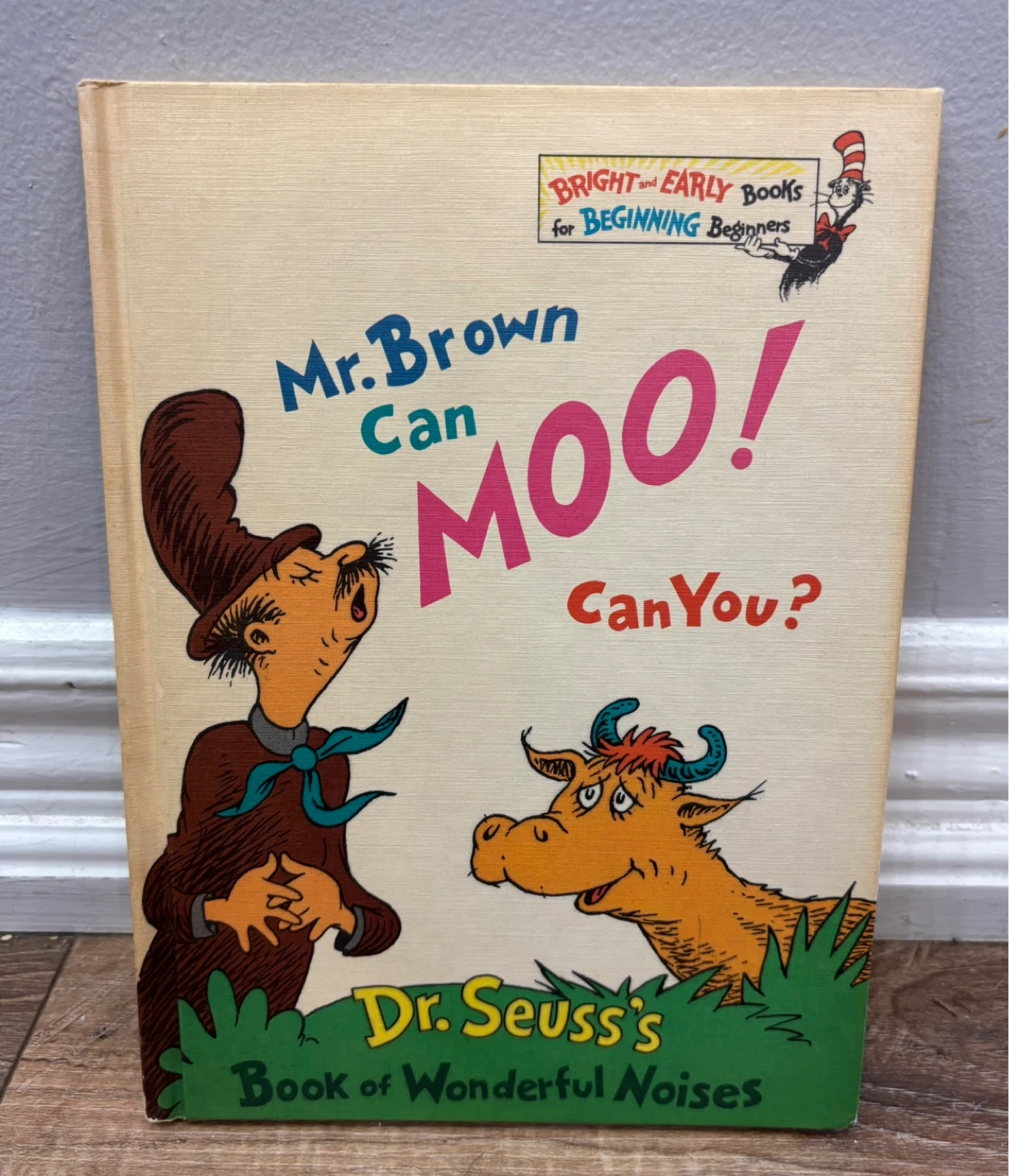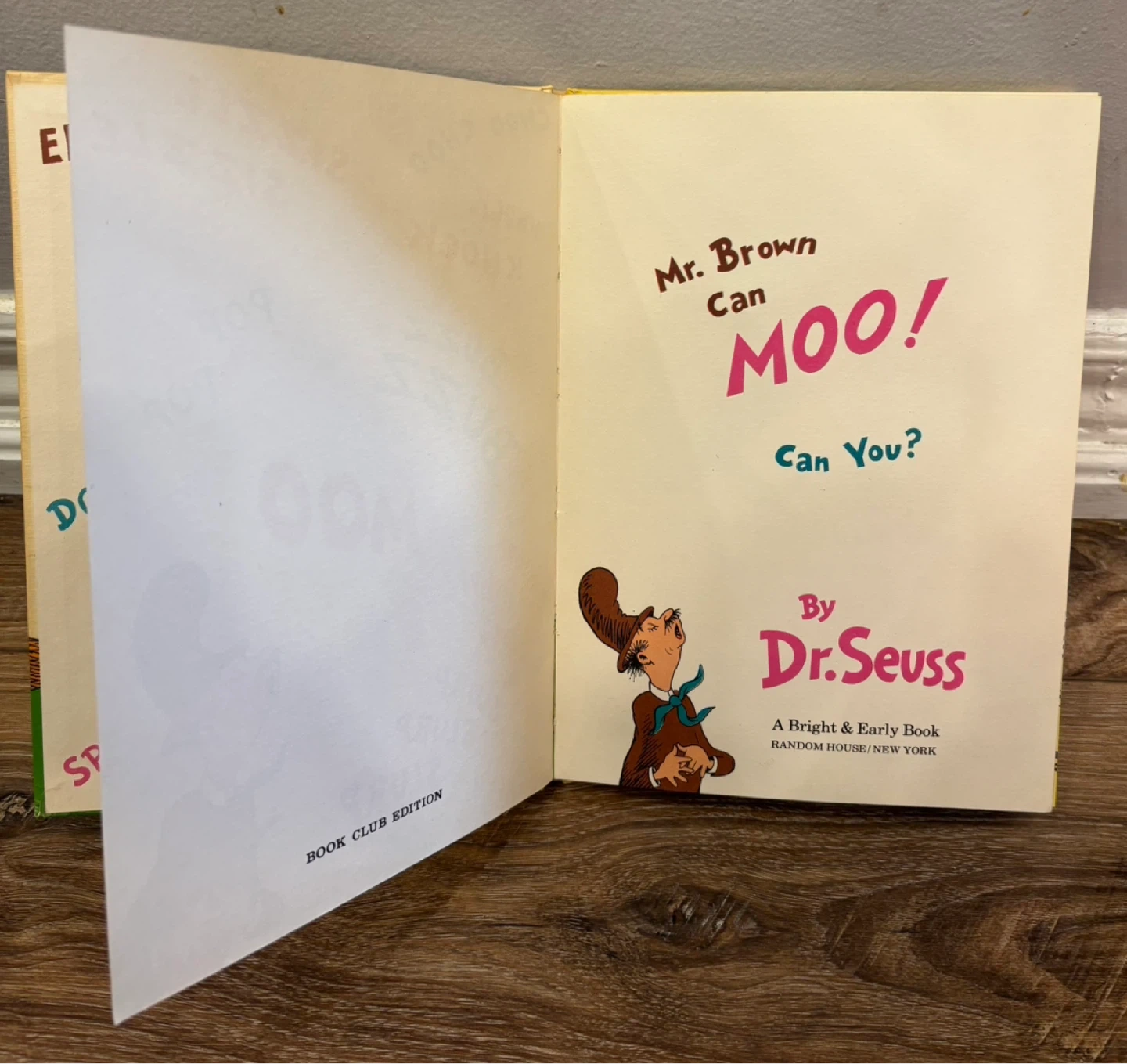 Dr Seuss " Mr Brown Can Moo! Can You" 1970 First Edition Bright & Early Books In fair condition with yellowing and some dings.