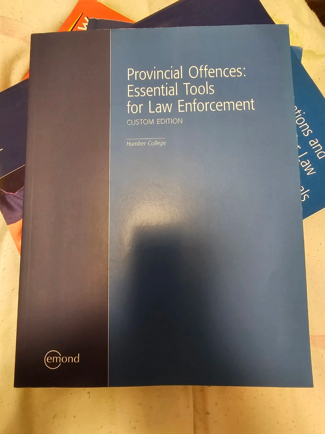 This is a custom edition textbook on Provincial Offences: Essential Tools for Law Enforcement. It was published by Emond and created for Humber College. Essential for understanding and applying provincial statutes.2018