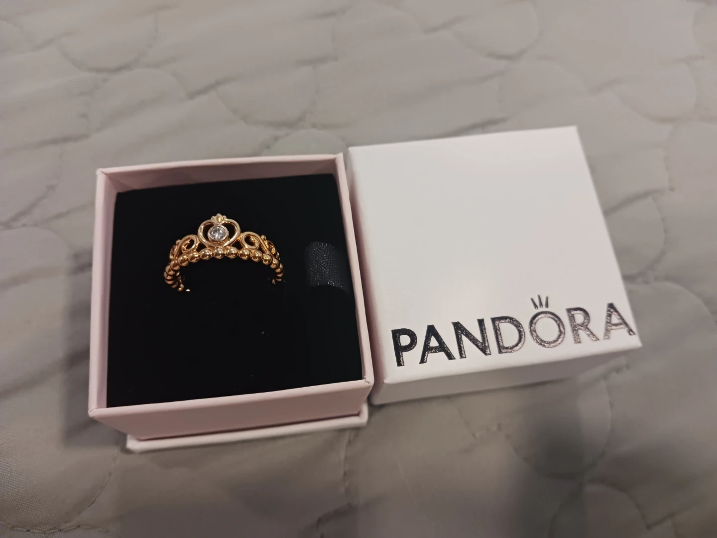 Pandora tiara ring with a central clear stone. Features a beaded crown design. Includes original box & pandora bag. Ready for give someone a gift π or for yourself........πππ