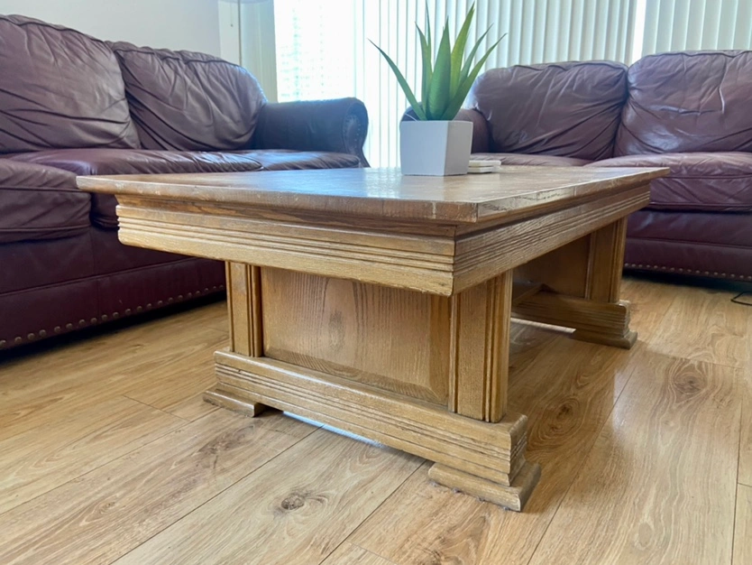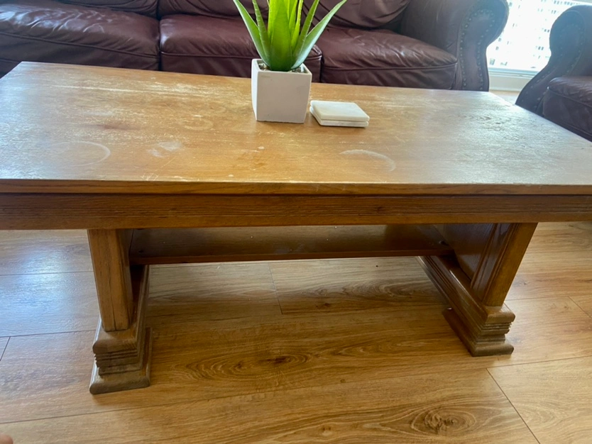 Good bones, but finish has lots of signs of wear, would be a good refinishing piece.