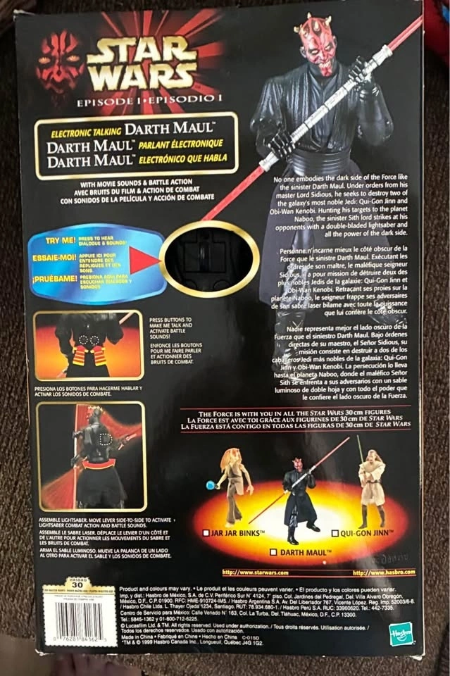 This is a Darth Maul 1999 Electronic 12" STAR WARS Action Figure. It has talking capabilities but needs batteries.
