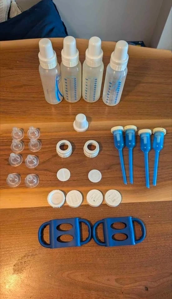 X4 8 oz bottles with vents, lids, and caps (vents help with gas and colic),