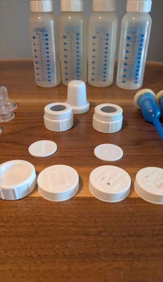 X4 8 oz bottles with vents, lids, and caps (vents help with gas and colic),
