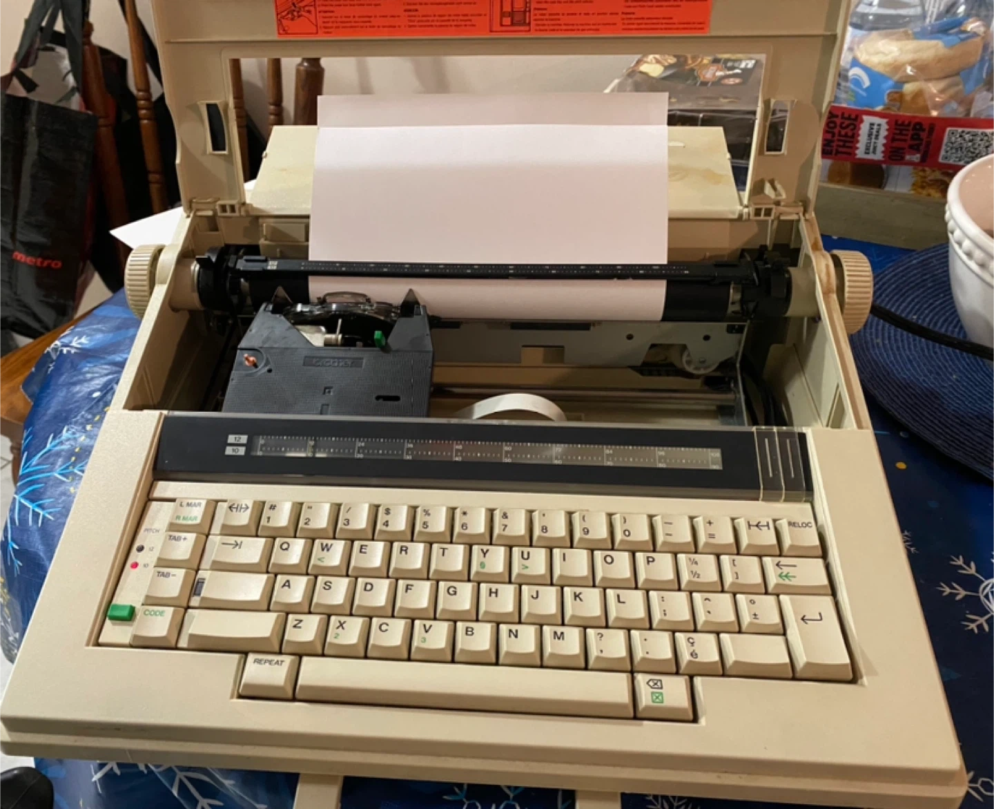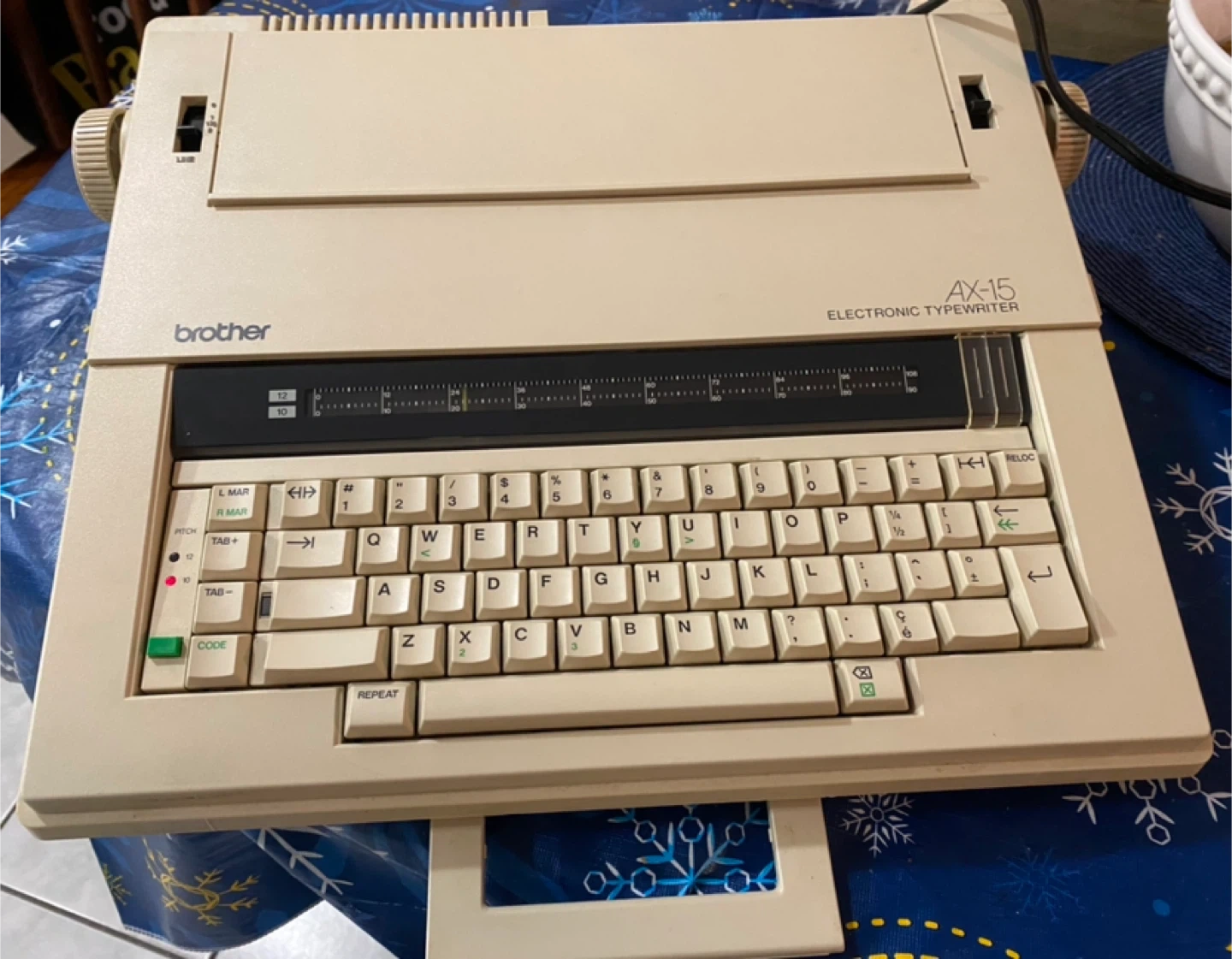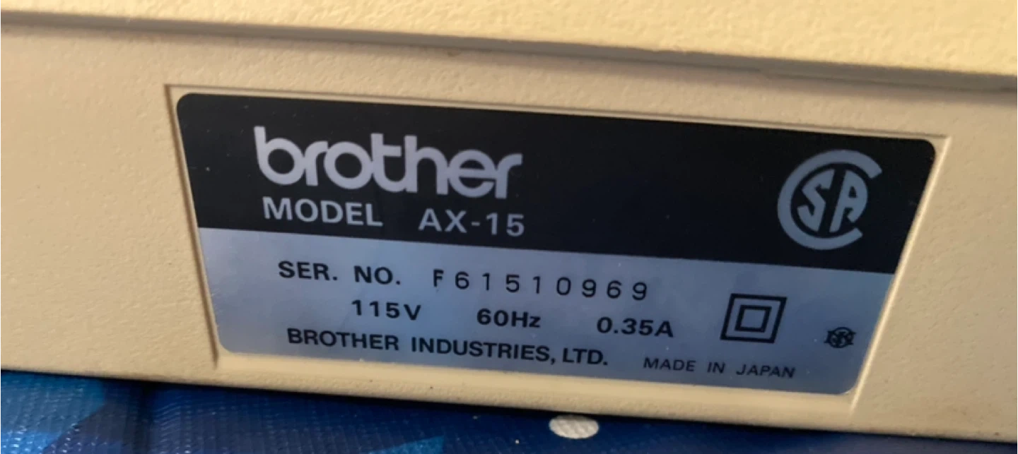 This is a Brother AX-15 electronic typewriter. It's a reliable machine for all your typing needs. It operates on 115V, 60Hz, and 0.35A.