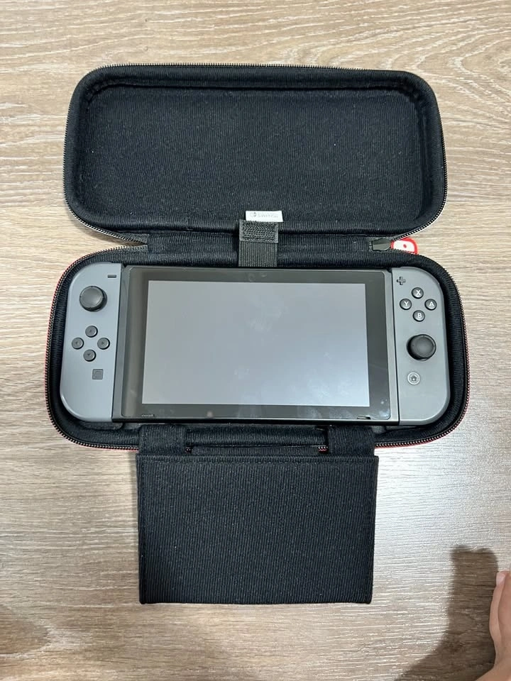 - 4x Joy-Cons (2 Grey, 1 Neon Red, 1 Neon Blue) with straps.