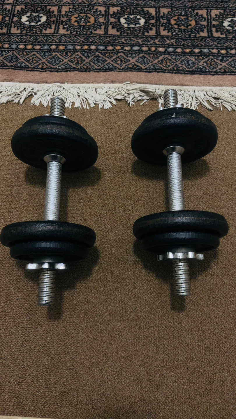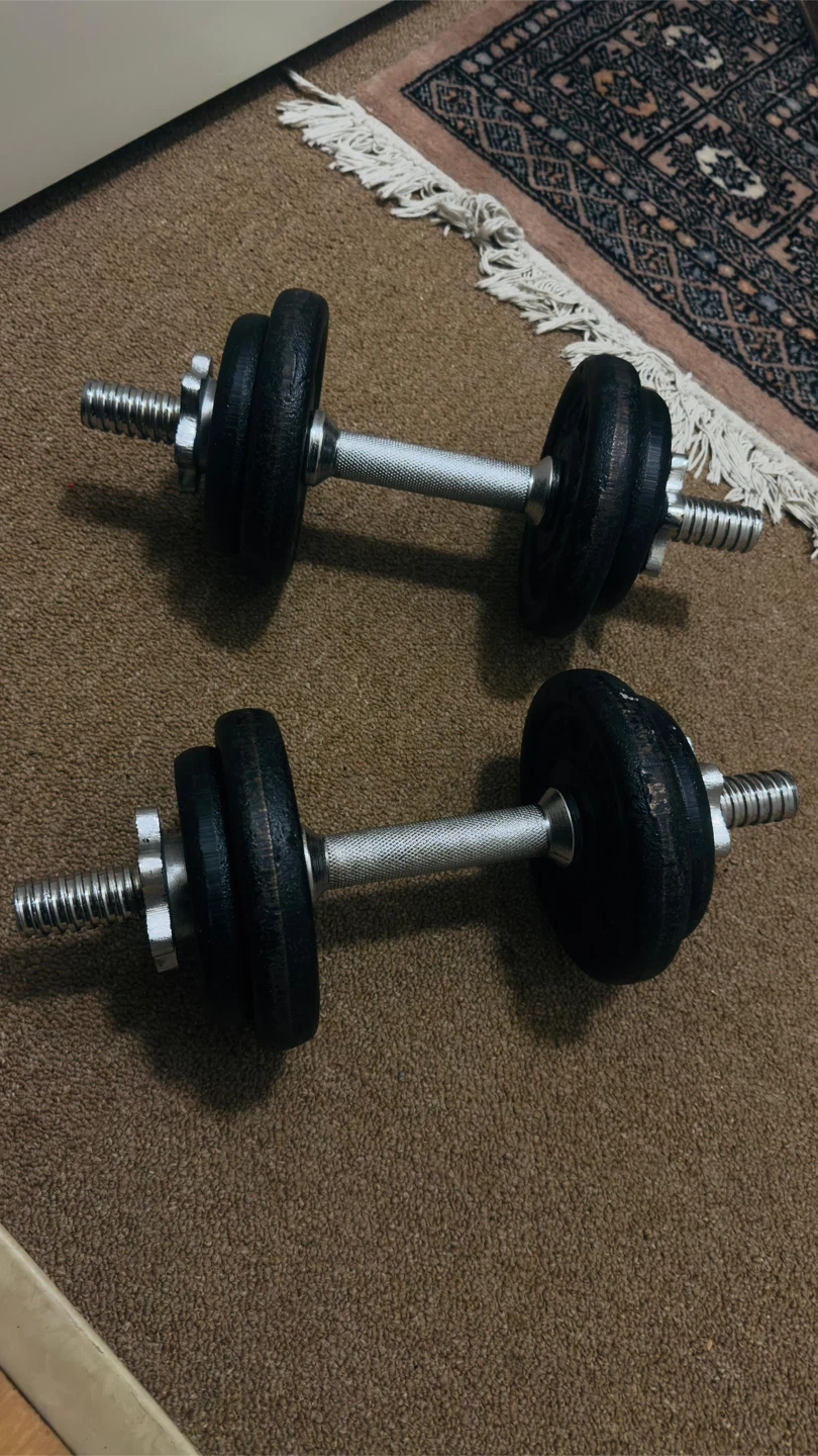 Selling a pair of adjustable dumbbells in good condition. Great for home workouts and building strength! They have some signs of use but are fully functional and ready for a new home