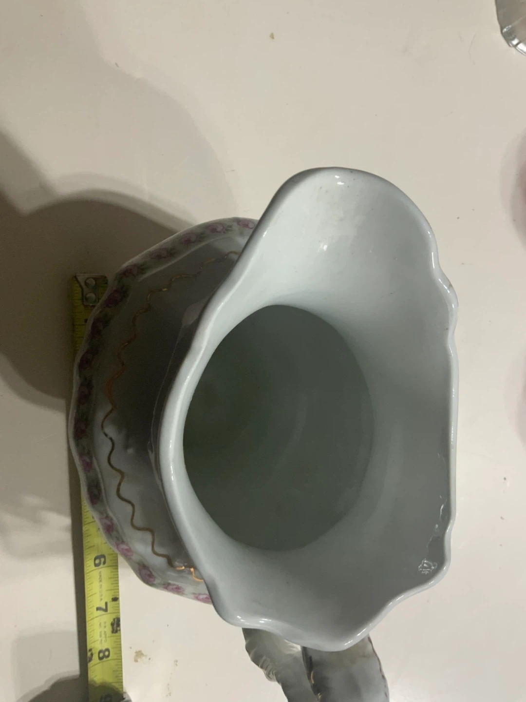 Buy & SellVintage Floral PitcherVintage Floral Pitcher$10White pitcher with a decorative floral pattern and gold trim. It's approximately 8 inches tall. Ceramic material.WHERE TO MEETCheck LocationView MapSELLERVictorMississauga Valleys443 reviews0 chats·0 favorites·1 viewsSEND CHAT TO SELLERHi Victor! I’m interested in your listing.Hi Victor! I’m interested in your listing.Get the Karrot app to chatSign In to chat