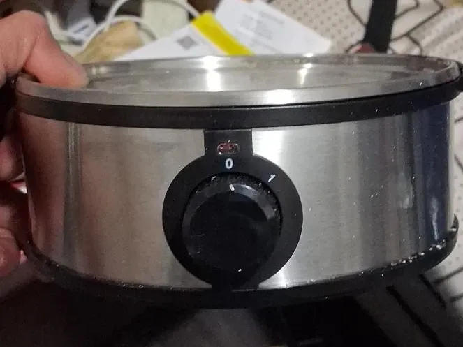 Compact electric grill with adjustable temperature dial. Features a durable stainless steel exterior. Great for small kitchens or dorm rooms!