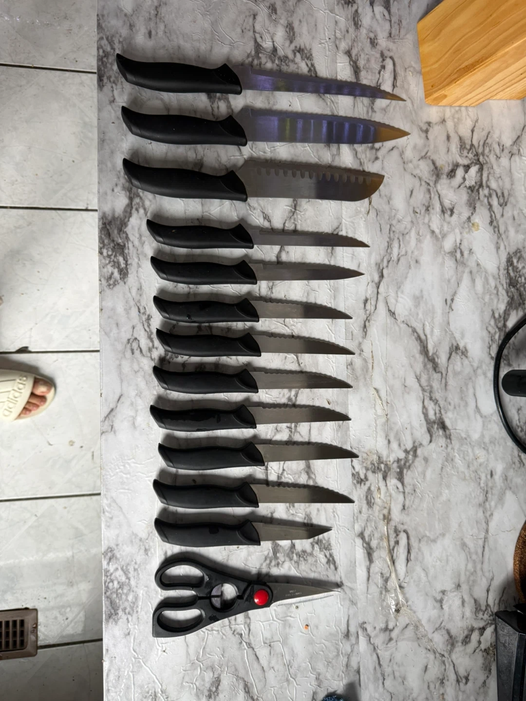 Buy & SellBrand new Knife Set with Wooden BlockBrand new Knife Set with Wooden Block$30A set of kitchen knives and a pair of scissors stored in a wooden block. Handles are black plastic. This set is suitable for everyday kitchen tasks.ConditionNewWHERE TO MEETCheck LocationView MapSELLERverifiedGuriMalvern16212 reviews0 chats·0 favorites·21 viewsSEND CHAT TO SELLERHi Guri! I’m interested in your listing.Hi Guri! I’m interested in your listing.Get the Karrot app to chatSign In to chat