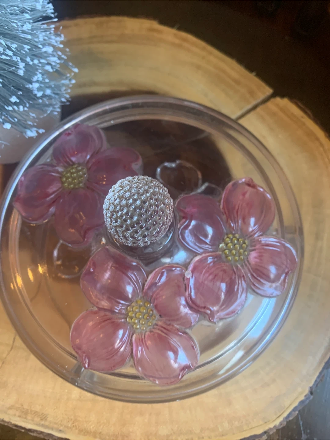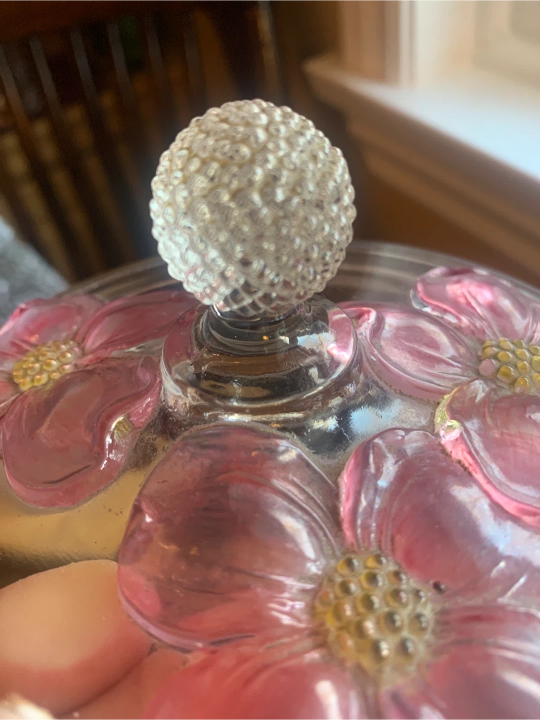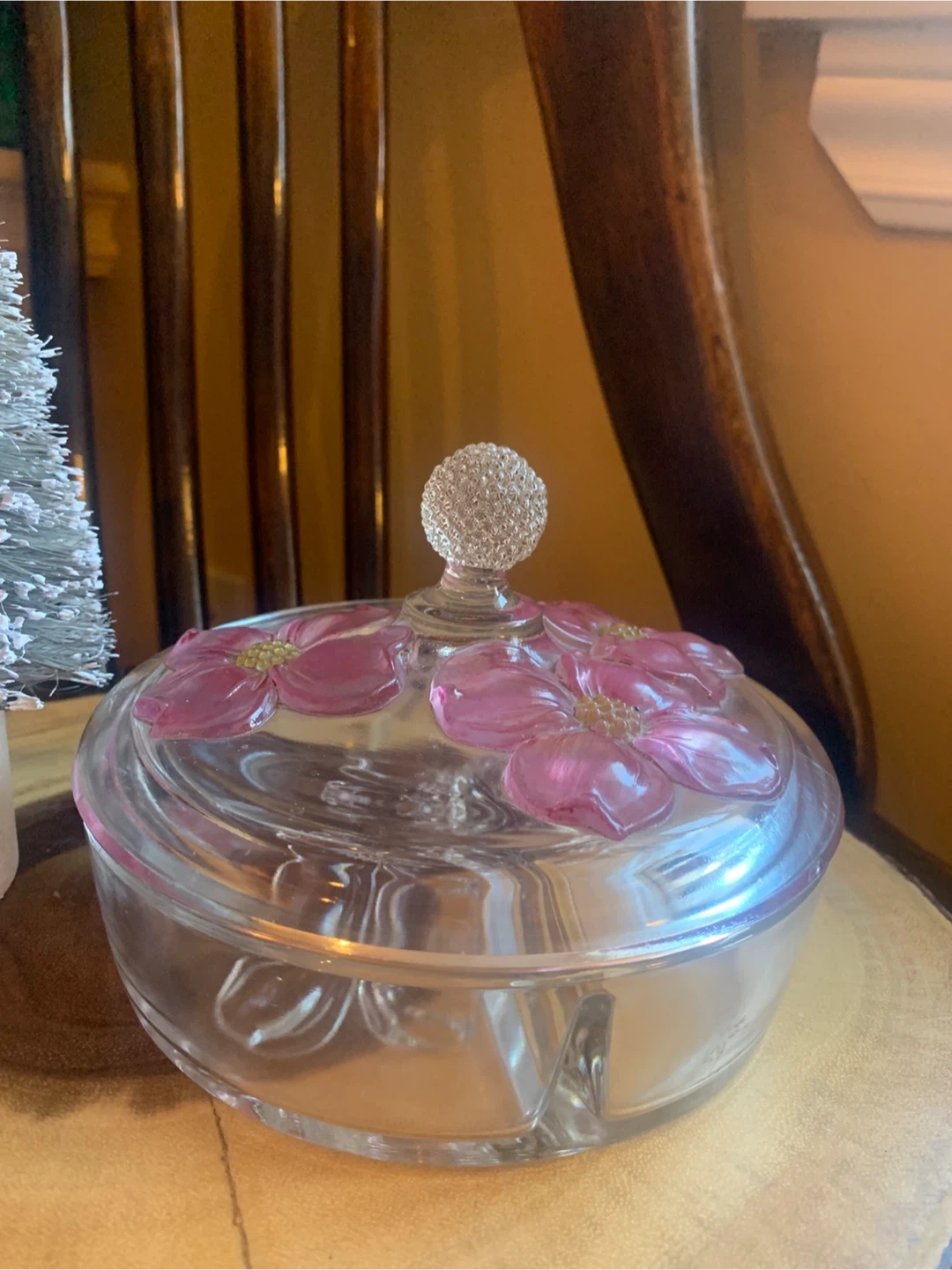 Vintage Glass Candy Dish with Pink Dogwood Blossoms