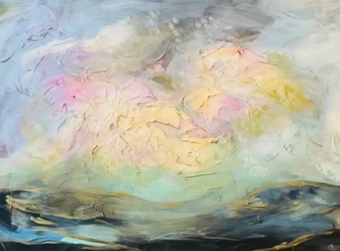 Textured abstract painting with pastel colours. It's on canvas. This piece brings a soft, airy feel to any room!