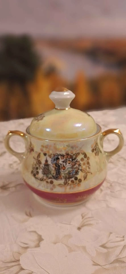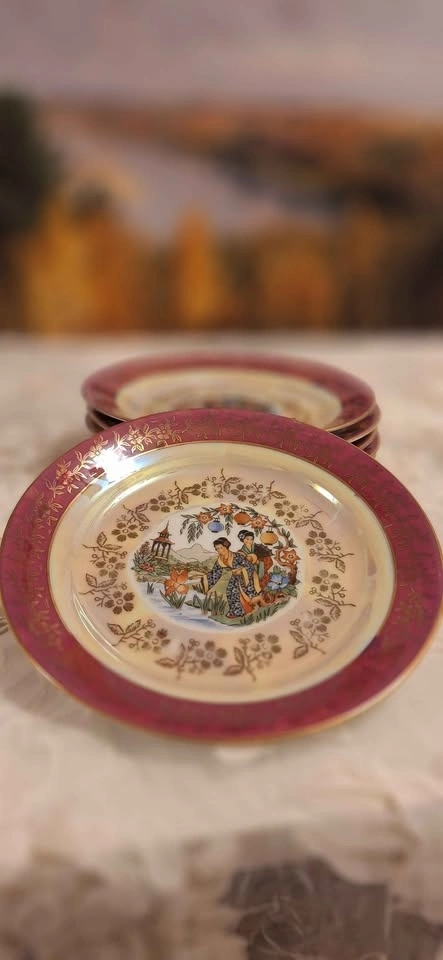 Vintage "Geisha" Porcelain Coffee Set – 30 Pieces. Mother-of- pearl & gold color. Made in East Germany | Limited Edition | Mid-Century Collectible