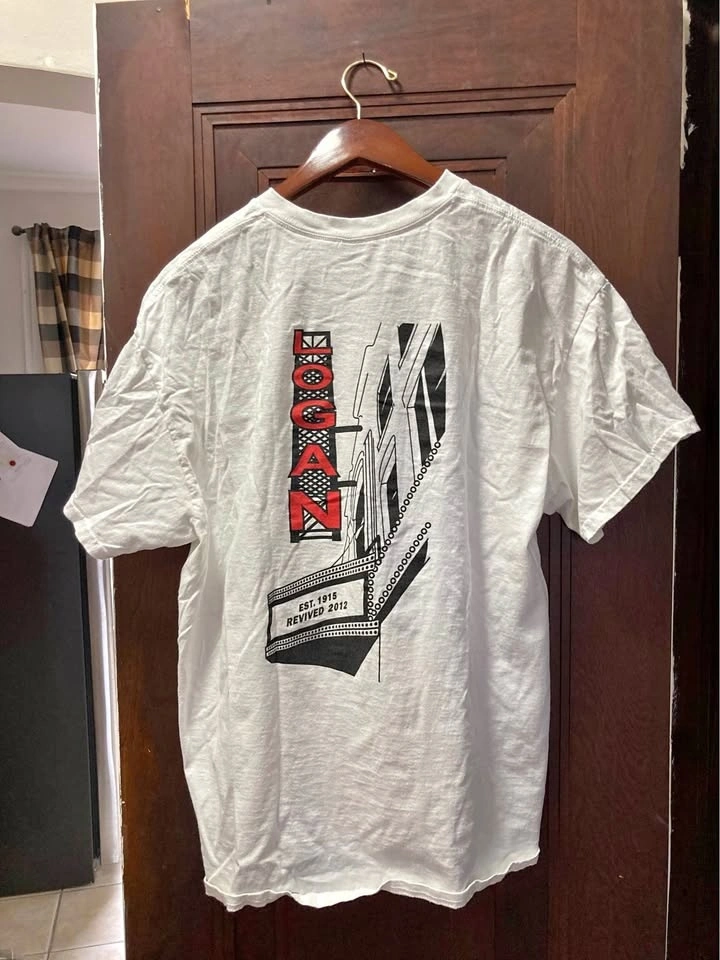 Buy & SellThe Logan Theatre T-Shirt XLThe Logan Theatre T-Shirt XL$25White XL t-shirt with the iconic Logan Theatre sign and marquee printed on it. Bought from the theatre a few years back, no longer fits.WHERE TO MEETCheck LocationView MapSELLERverifiedGeoffreyPortage Park943 reviews0 chats·0 favorites·4 viewsSEND CHAT TO SELLERHi Geoffrey! I’m interested in your listing.Hi Geoffrey! I’m interested in your listing.Get the Karrot app to chatSign In to chat