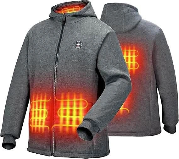 This Kemimoto heated sweatshirt features a fleece outer layer and lining for cozy warmth. It's windproof and abrasion-resistant, great for outdoor activities like hunting, ice fishing, motorcycle riding, hiking, and outdoor work. The sweatshirt comes with a 12V 20000mAh battery pack and 3 heating modes for quick warmth. Available in black, green, and grey in sizes L, XL, and XXL.