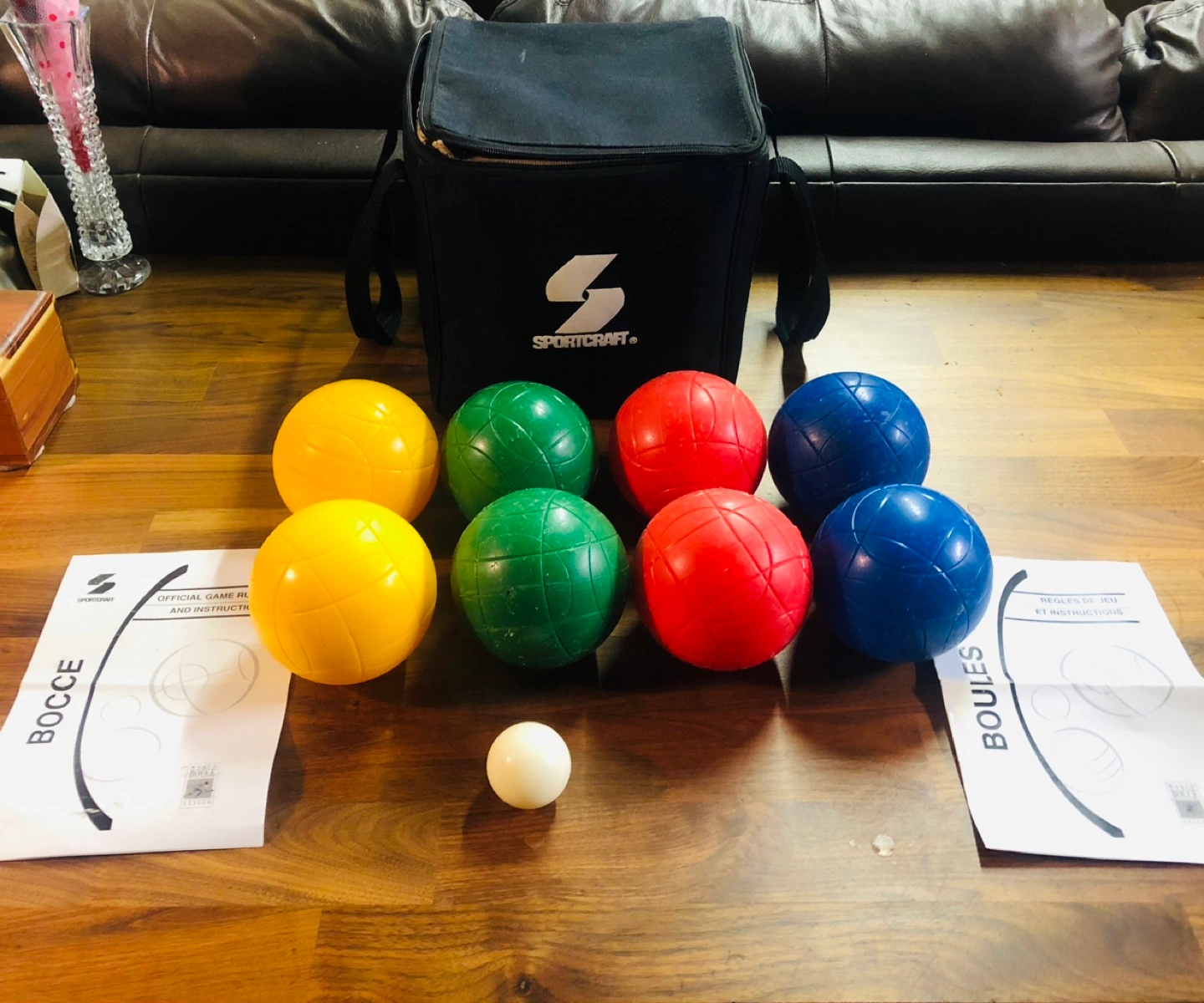 Selling a complete Sportcraft bocce ball set! Comes with all the balls, the pallino (small white ball), the carrying case, and the official game rules and instructions