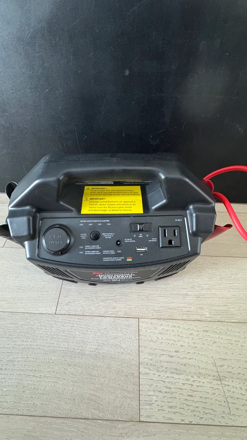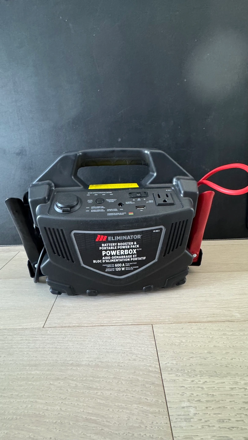 Portable power supply. Battery booster. Includes jumper cables. Multiple power outlets. 120W.