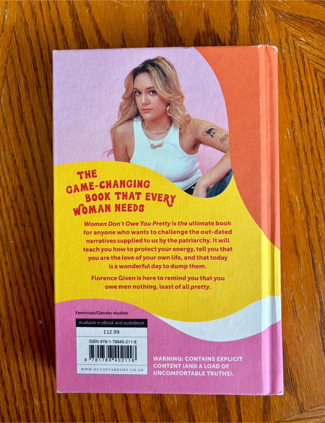 Hardcover copy of, 'Women Don't Owe You Pretty' by Florence Given