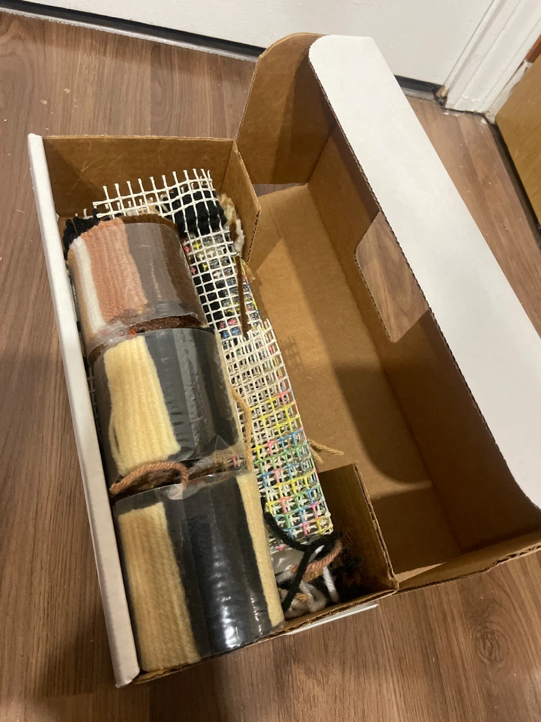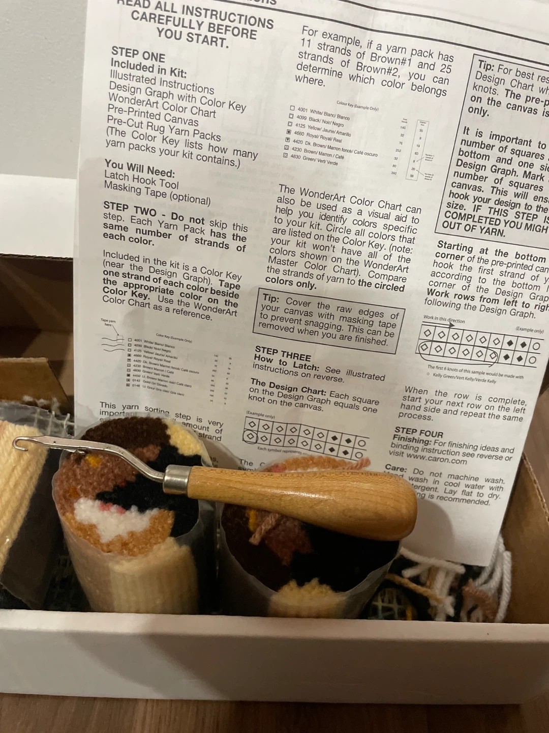 This is a Wonderart latch hook kit for creating a cat design. The finished rug size is 12" x 12" or 30 cm x 30 cm. It includes a canvas, latch hook tool, and yarn packs. This kit is suitable for beginners to intermediate crafters.