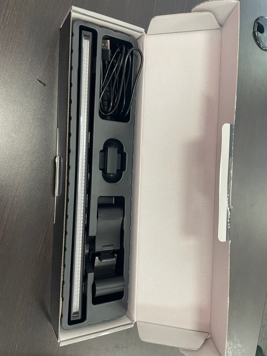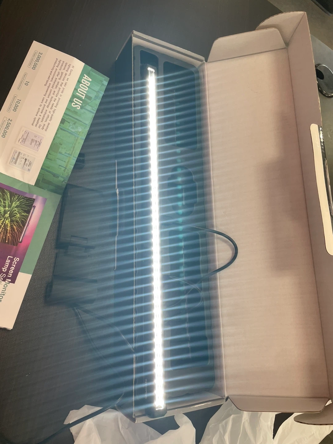 This is a monitor light bar, 20 inches in length. It includes a remote for 15 modes and 4 color options. Brightness is adjustable.