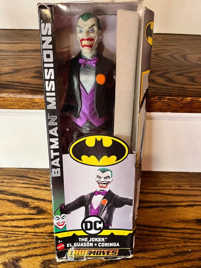 142I'm offering a DC Comics Batman Missions True Moves The Joker action figure, a collectible for fans and enthusiasts alike. This figure features 11 points of articulation, allowing for a range of dynamic poses. The item is in good condition, housed in its original packaging, though the box does show some signs of wear. Check out my other listings for more cool stuff!