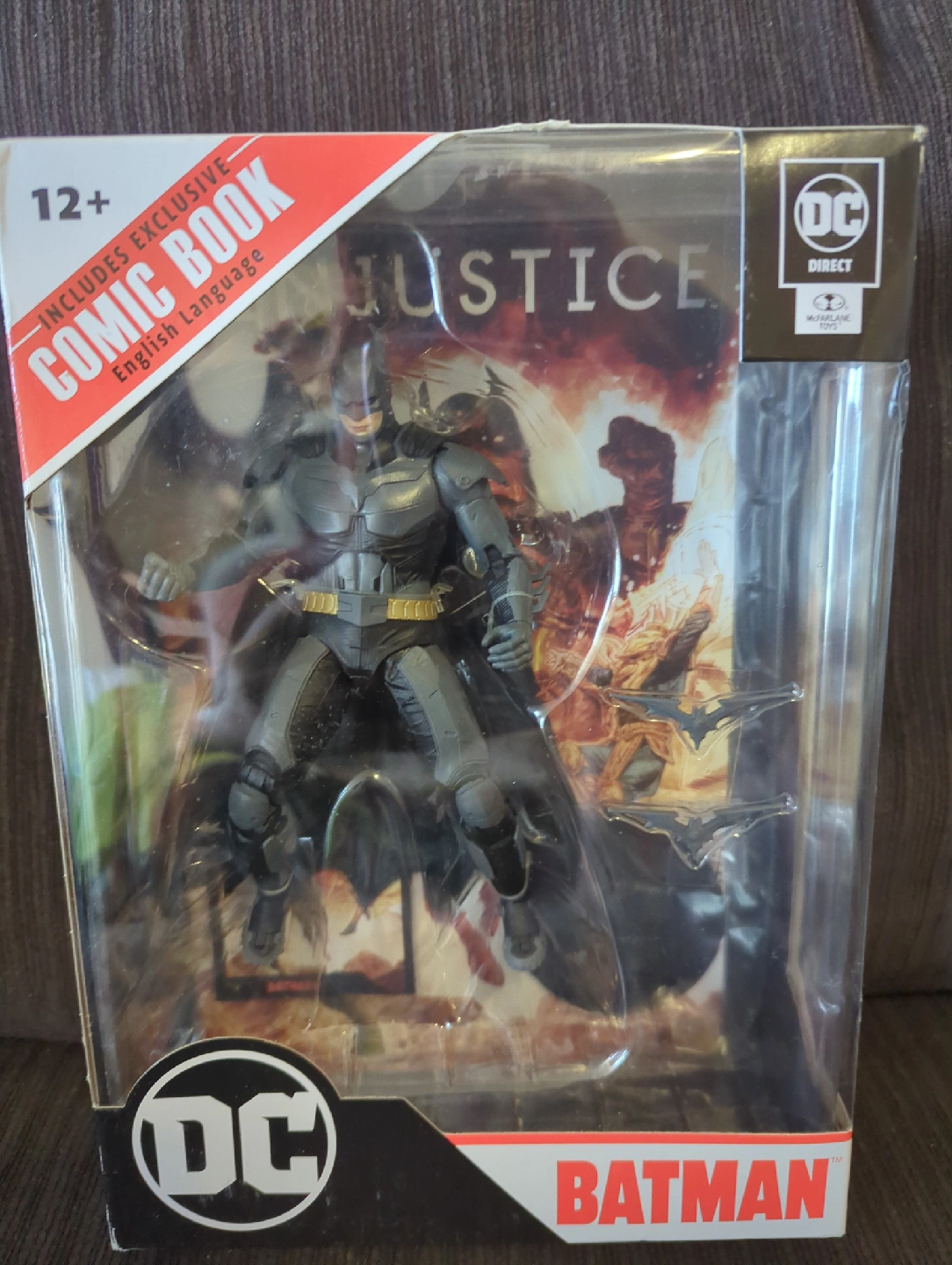 Selling a DC Direct Batman action figure from the Justice series! It comes with an exclusive English language comic book and is suitable for ages 12+ It's still in its original packaging, so it's in new condition!