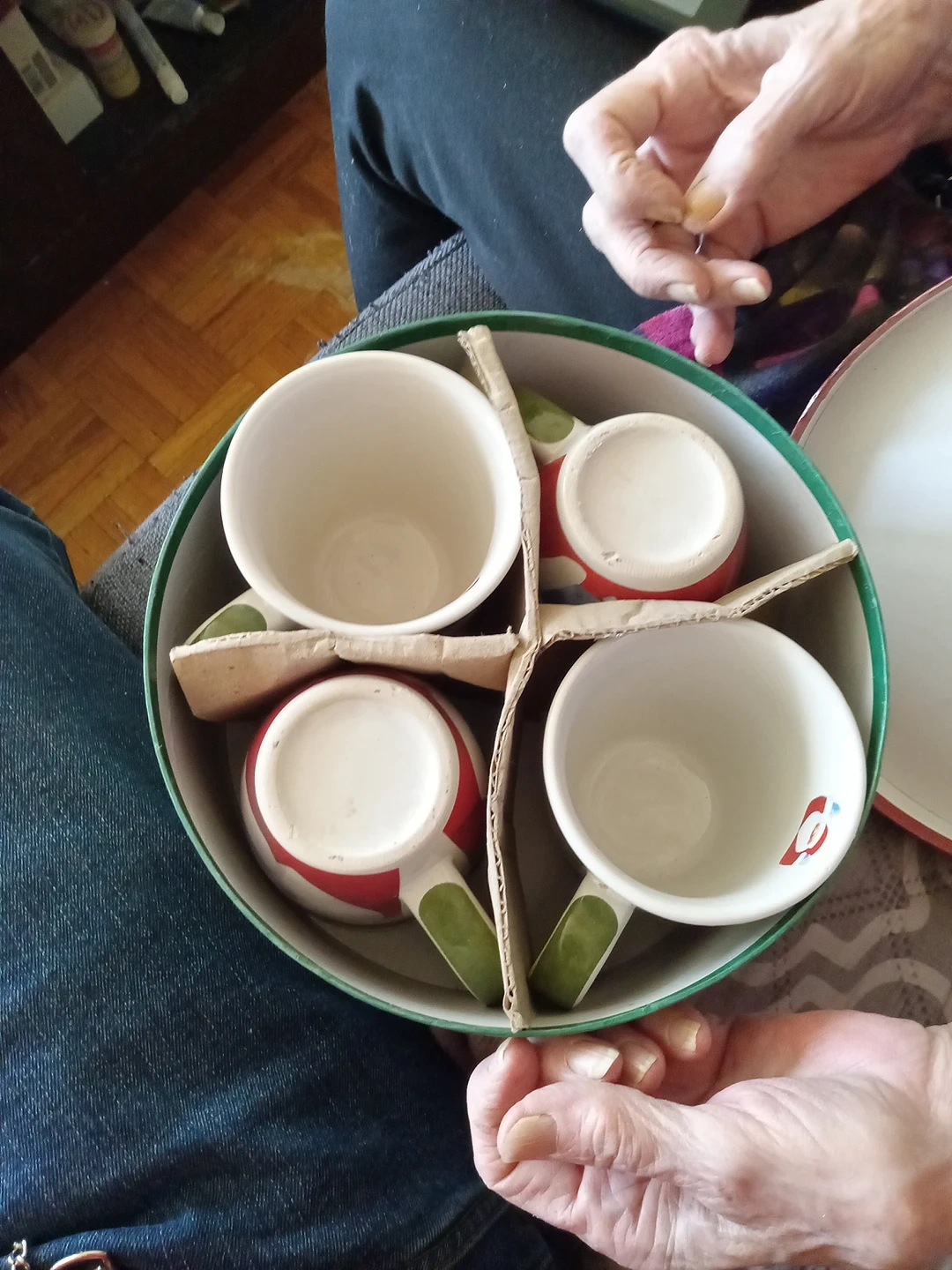 Selling all 4 cups/mugs as is in container, In good condition and are not used, no scratches or marks. Asking $5