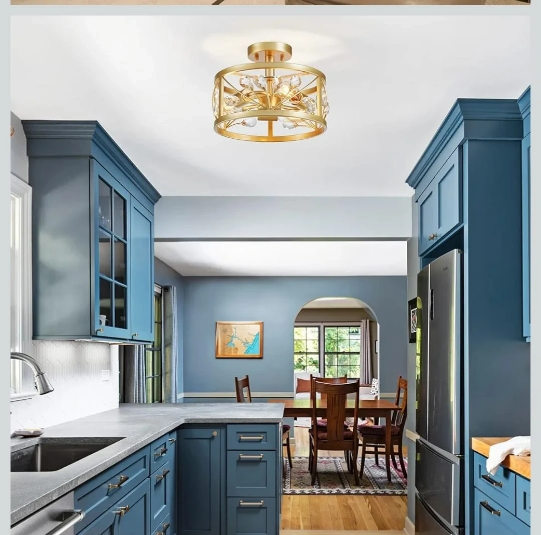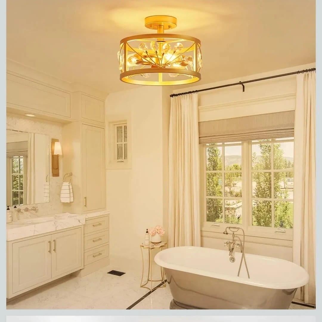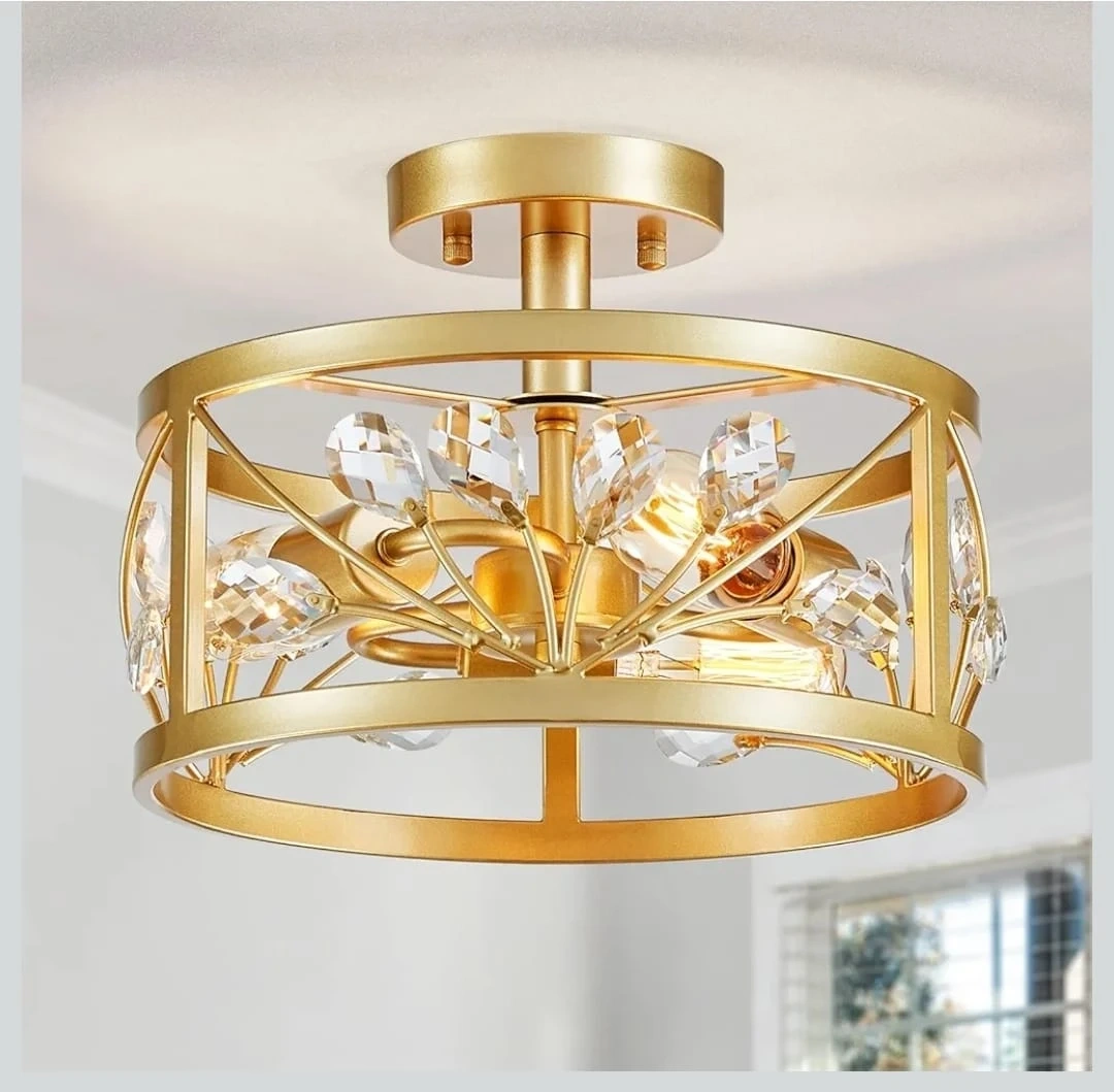 Gold Flush Mount Ceiling Light Fixture with Crystal Accents