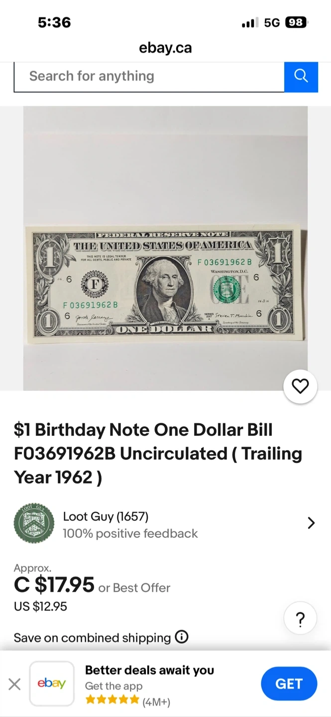 Buy & Sell1 Dollar Bill - Federal Reserve Note1 Dollar Bill - Federal Reserve Note$5This is a one dollar bill from the United States of America, a Federal Reserve Note. It features George Washington.WHERE TO MEETCheck LocationView MapSELLERverifiedMustafaMarine Hamilton37036 reviews0 chats·2 favorites·29 viewsSEND CHAT TO SELLERHi Mustafa! I’m interested in your listing.Hi Mustafa! I’m interested in your listing.Get the Karrot app to chatSign In to chat
