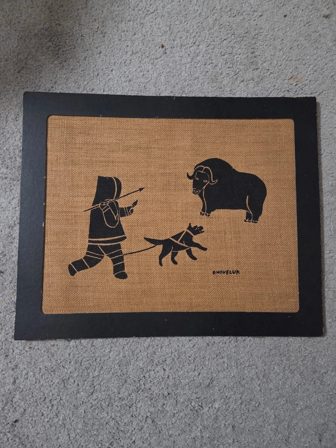 Original Mona Ohoveluk Inuit Art, Stencil on Burlap, Hunting