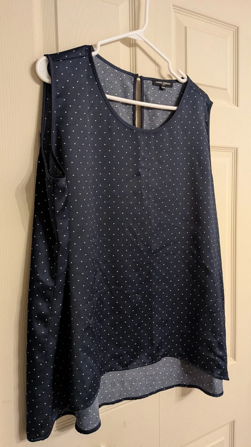 Mario Serrani navy blue with polka dots blouse, size XXL