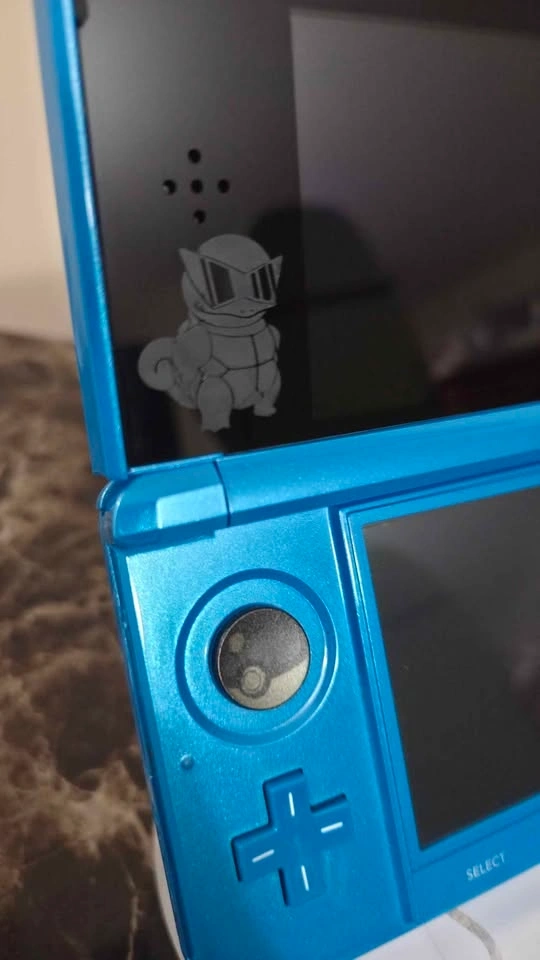 Light Blue Modded 3DS | Squirtle Engraved C-Pad & Lens | New LCD