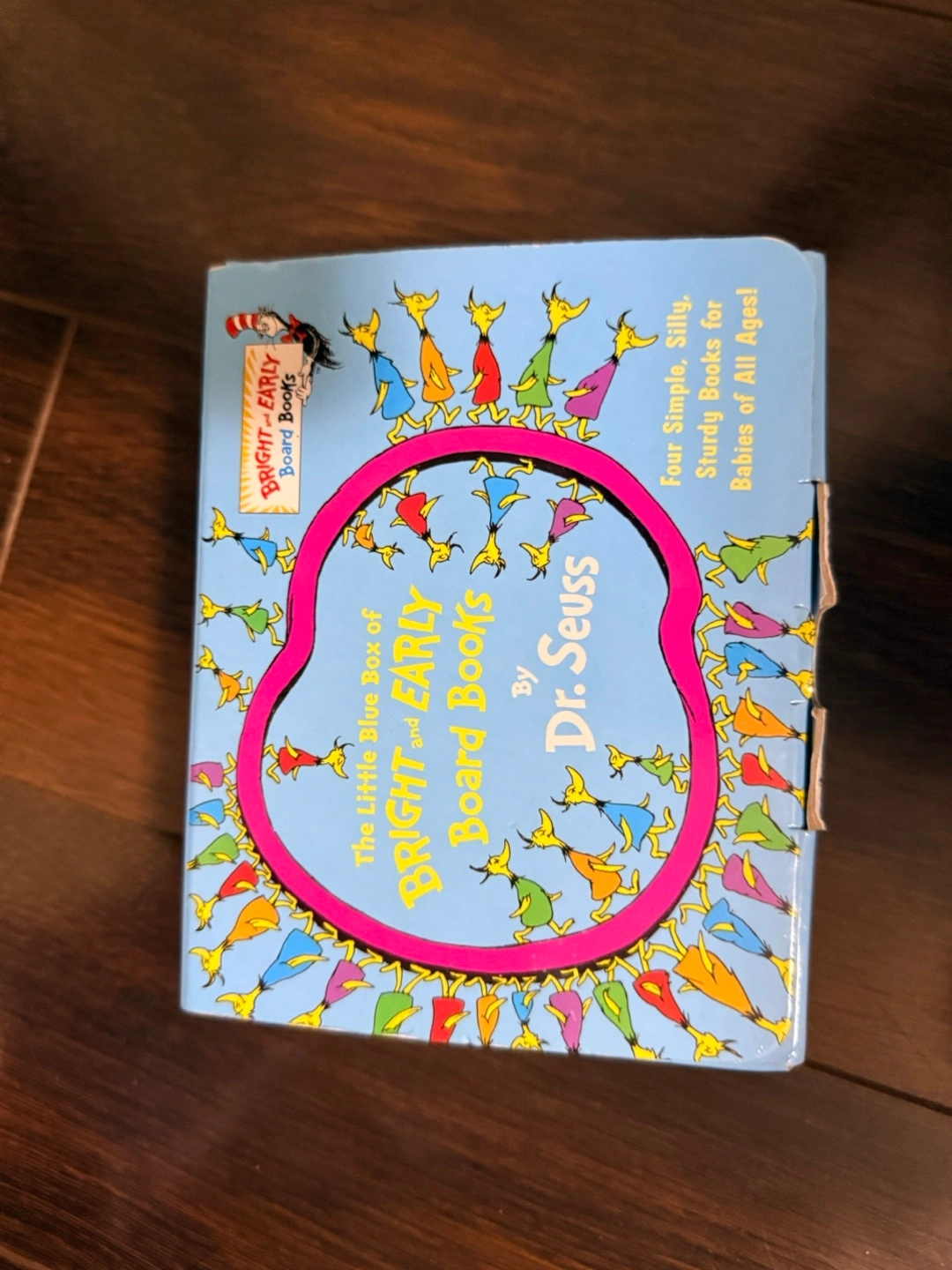 The Little Blue Boxed Set of 4 Bright and Early Board Books: Hop on Pop; Oh, the Thinks You Can Think!; Ten Apples Up On Top!; The Shape of Me and Other Stuff (https://a.co/d/0iDxI5va)