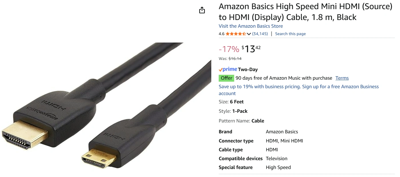 Amazon Basics High Speed Mini HDMI (Source) to HDMI (Display)